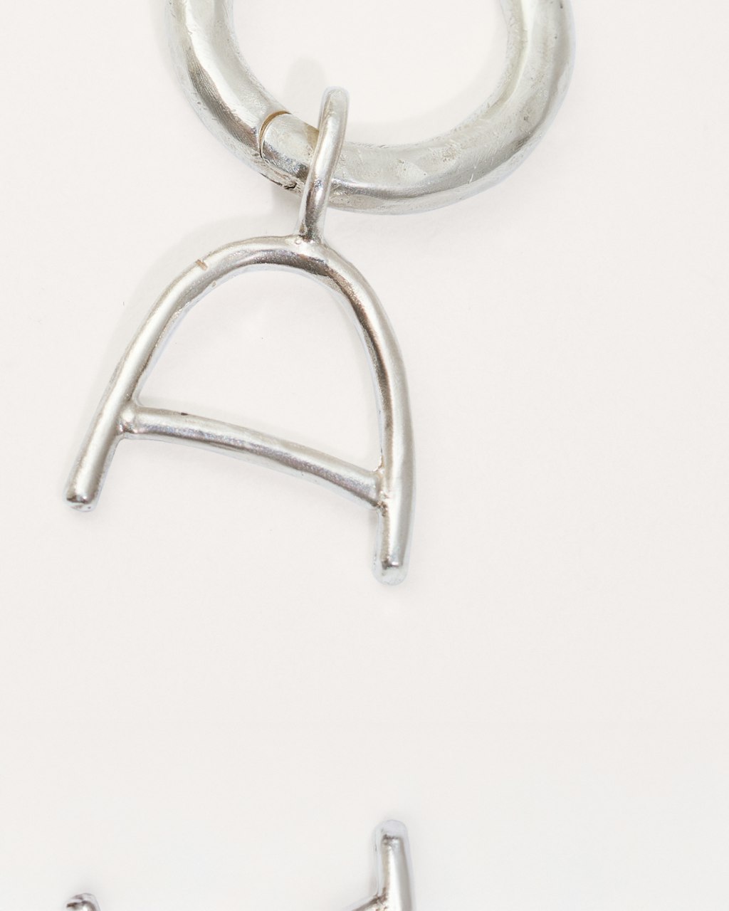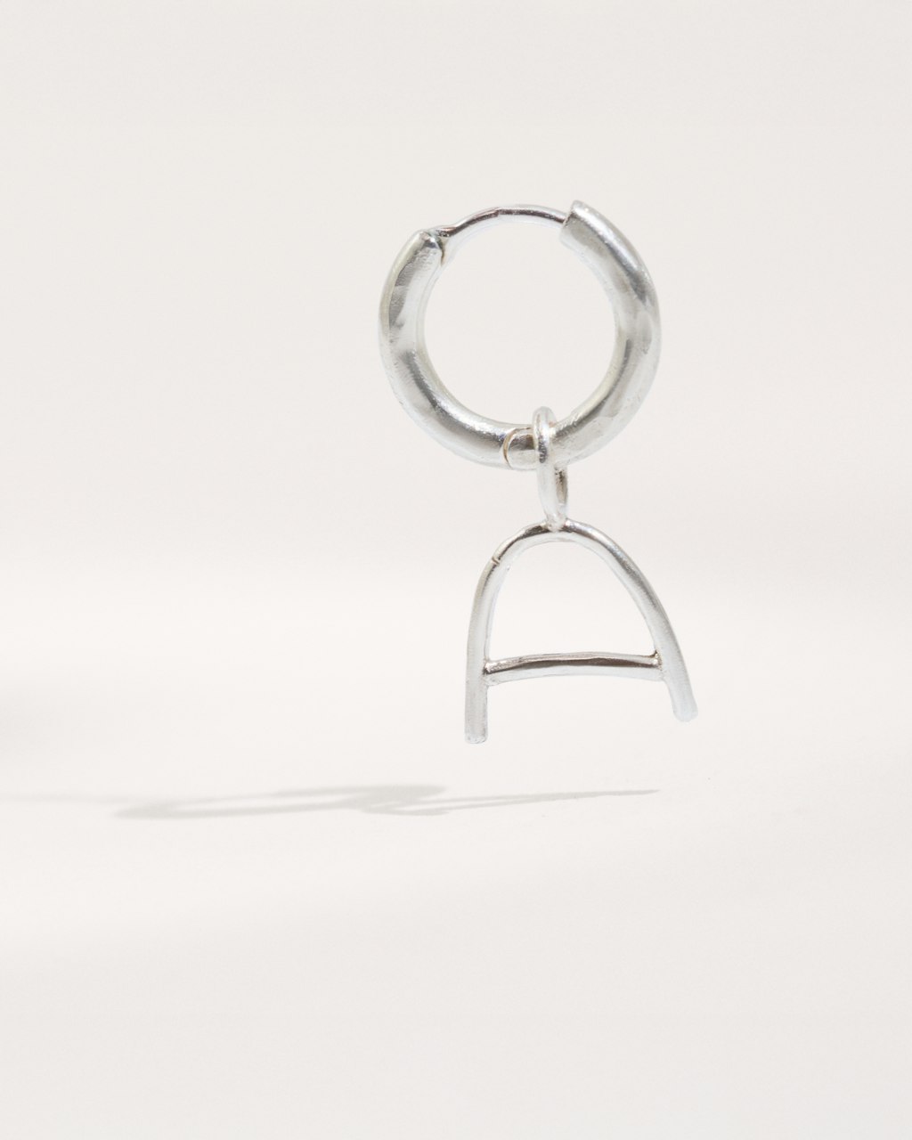 Individual small hoop earring, made in sterling silver with a pendant letter motif.