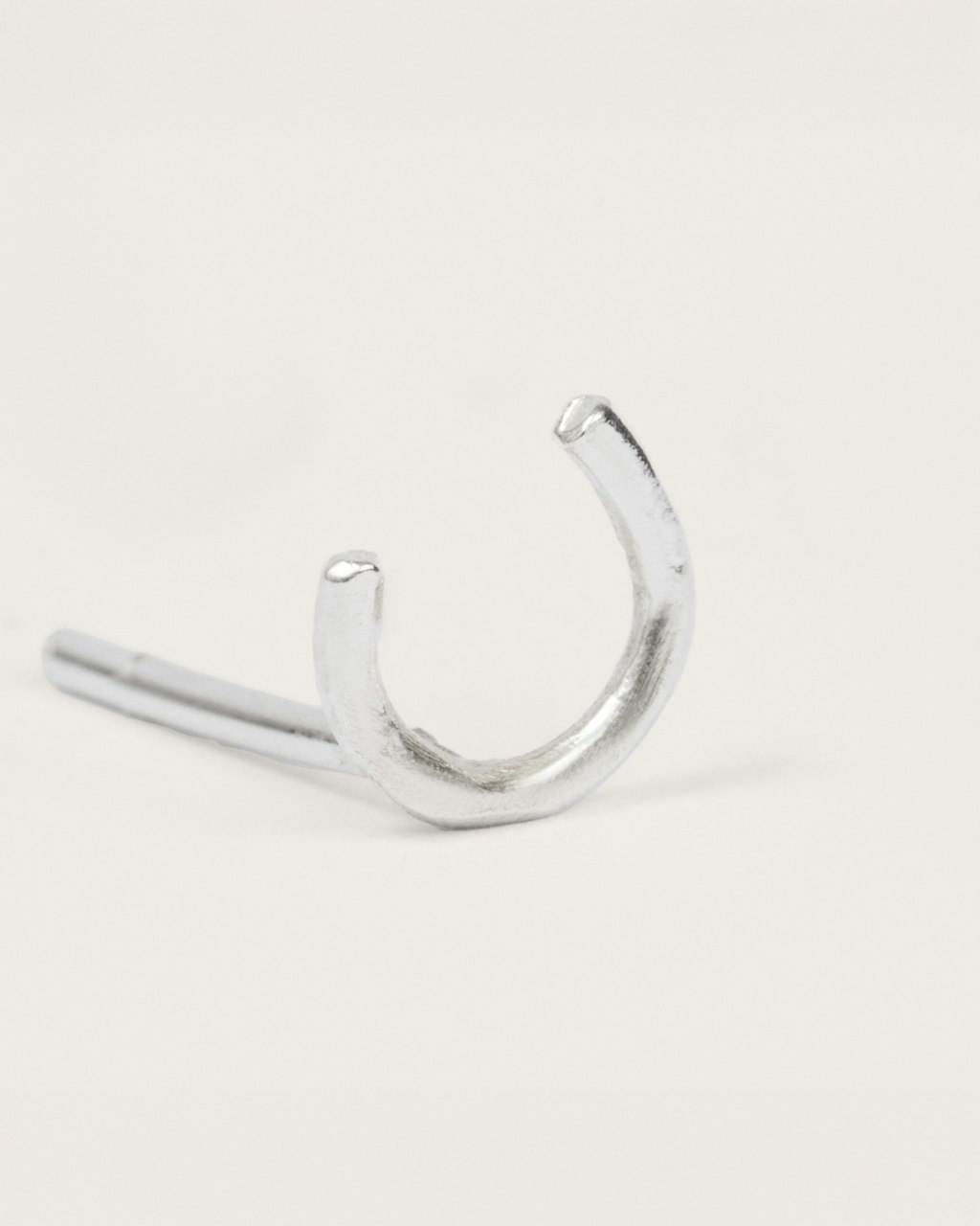 Individual mini sized earring, made in sterling silver with a letter motif.