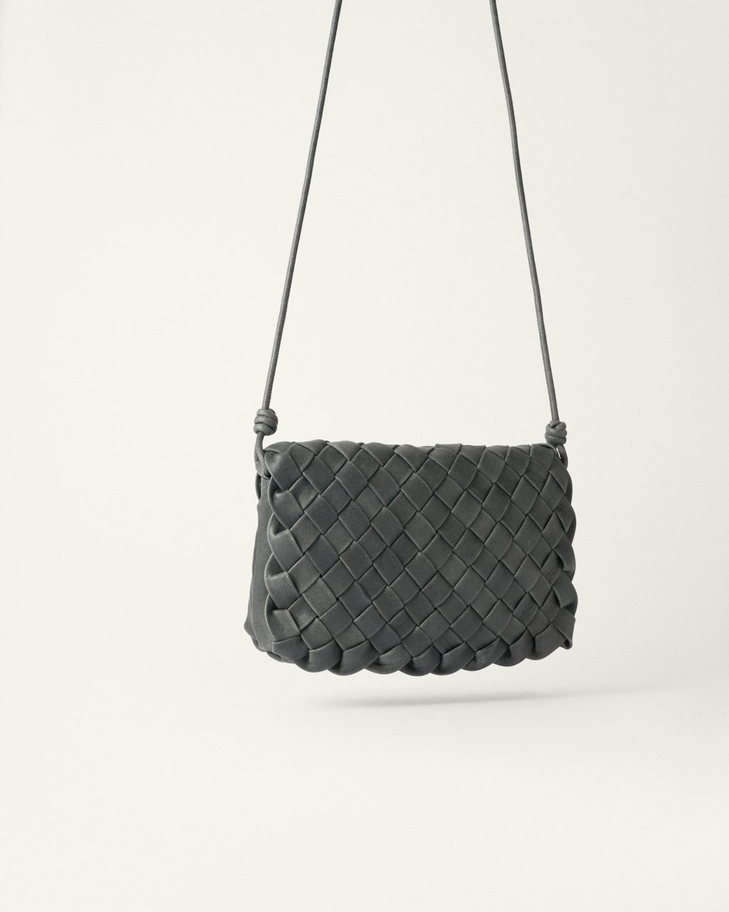 Measurements: 24 cm high, 26 cm wide, 114 cm leather shoulder strap.