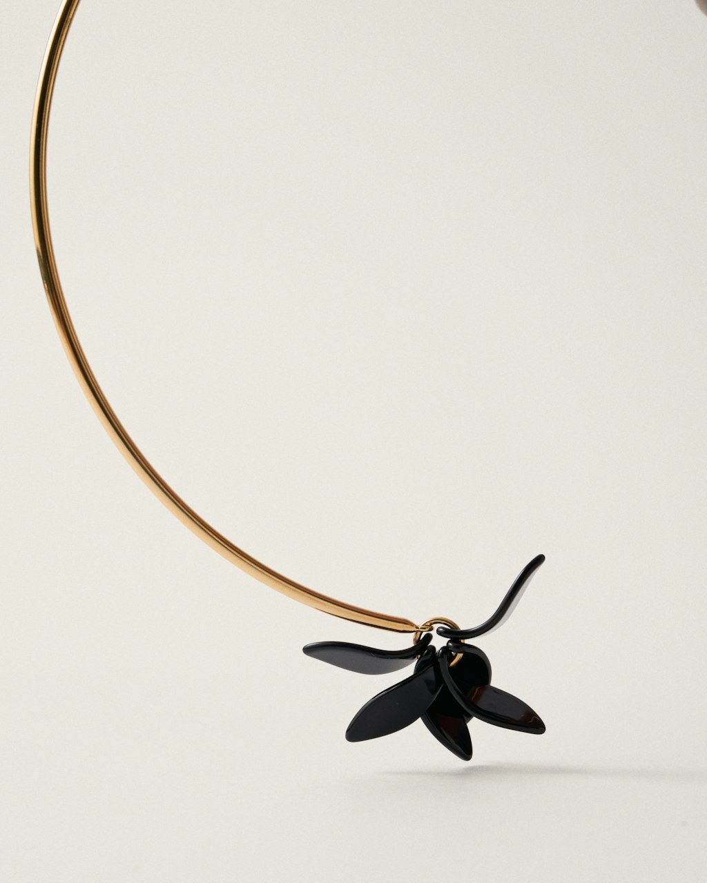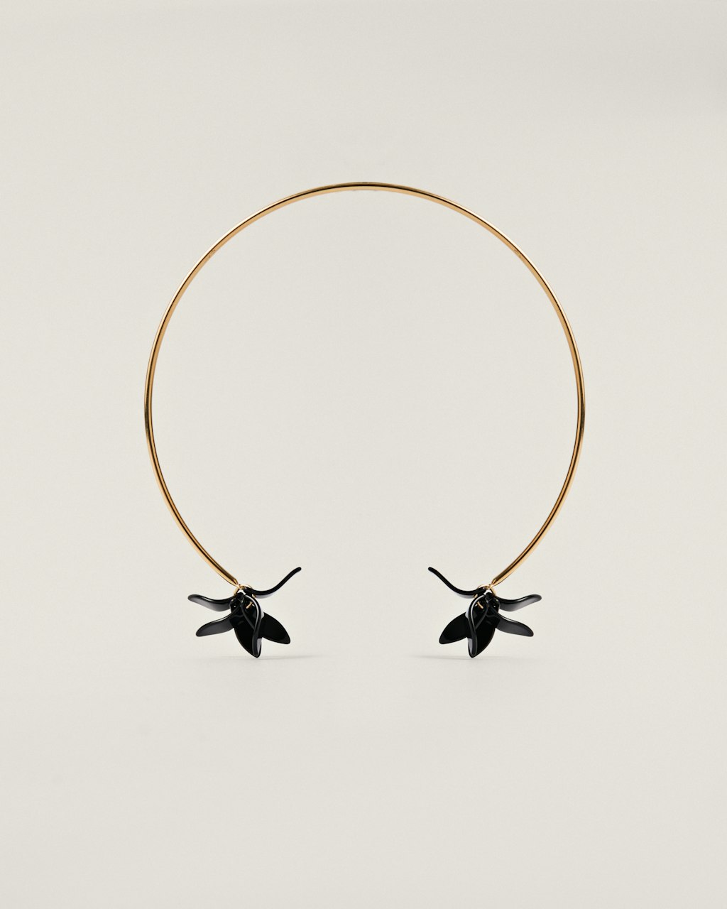 Choker with petal motifs made of methacrylate, very light in weight, hanging at both ends of the piece, made of brass and plated in 3 microns of 18kt gold
