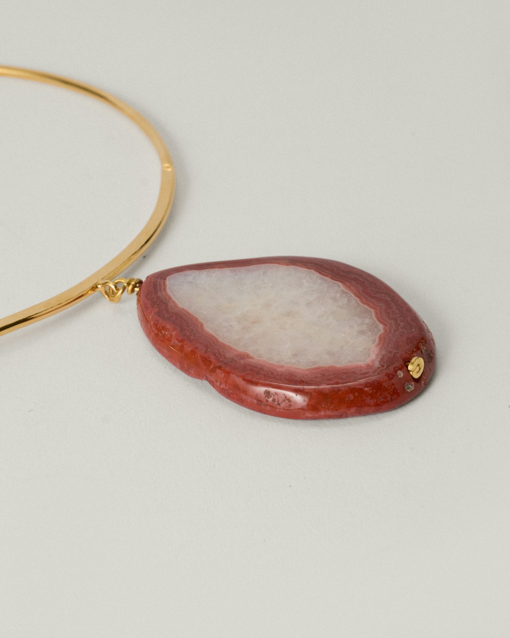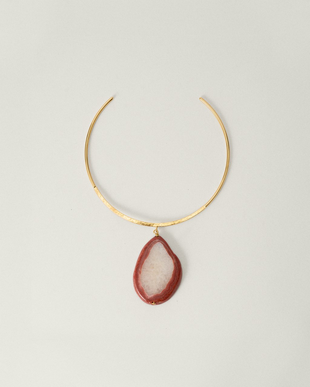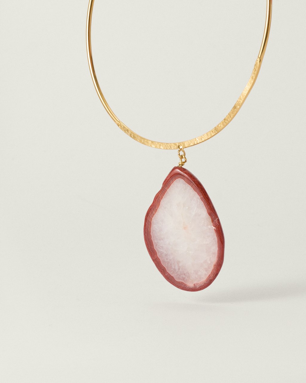 Statement collar choker made of 18kt gold 3 micron (Plaqué d'or) plated brass and nickel-free. With the detail of a natural agate stone pending on it.