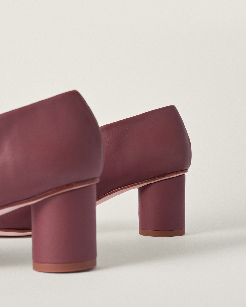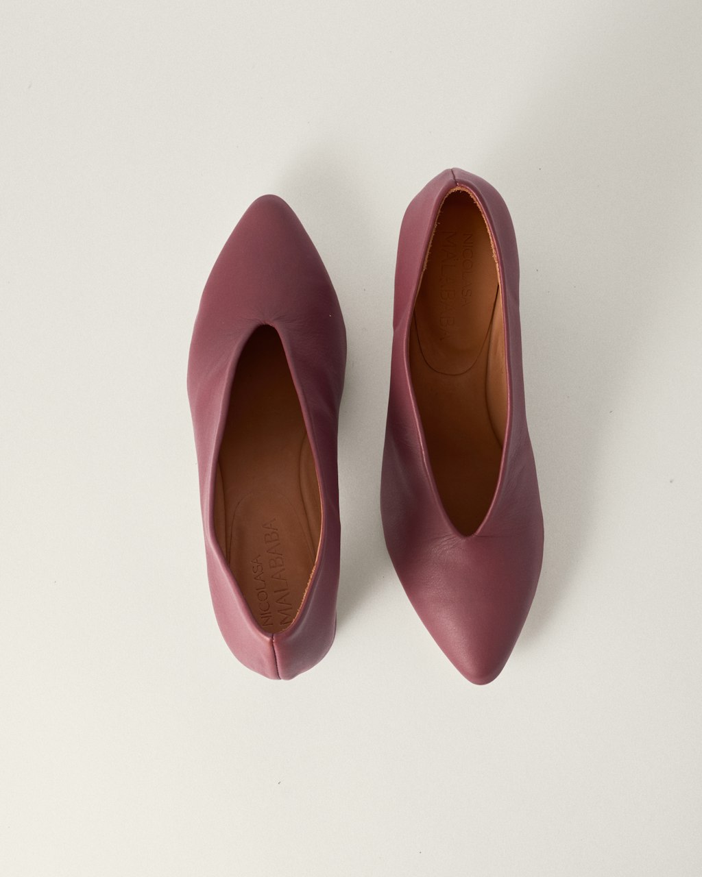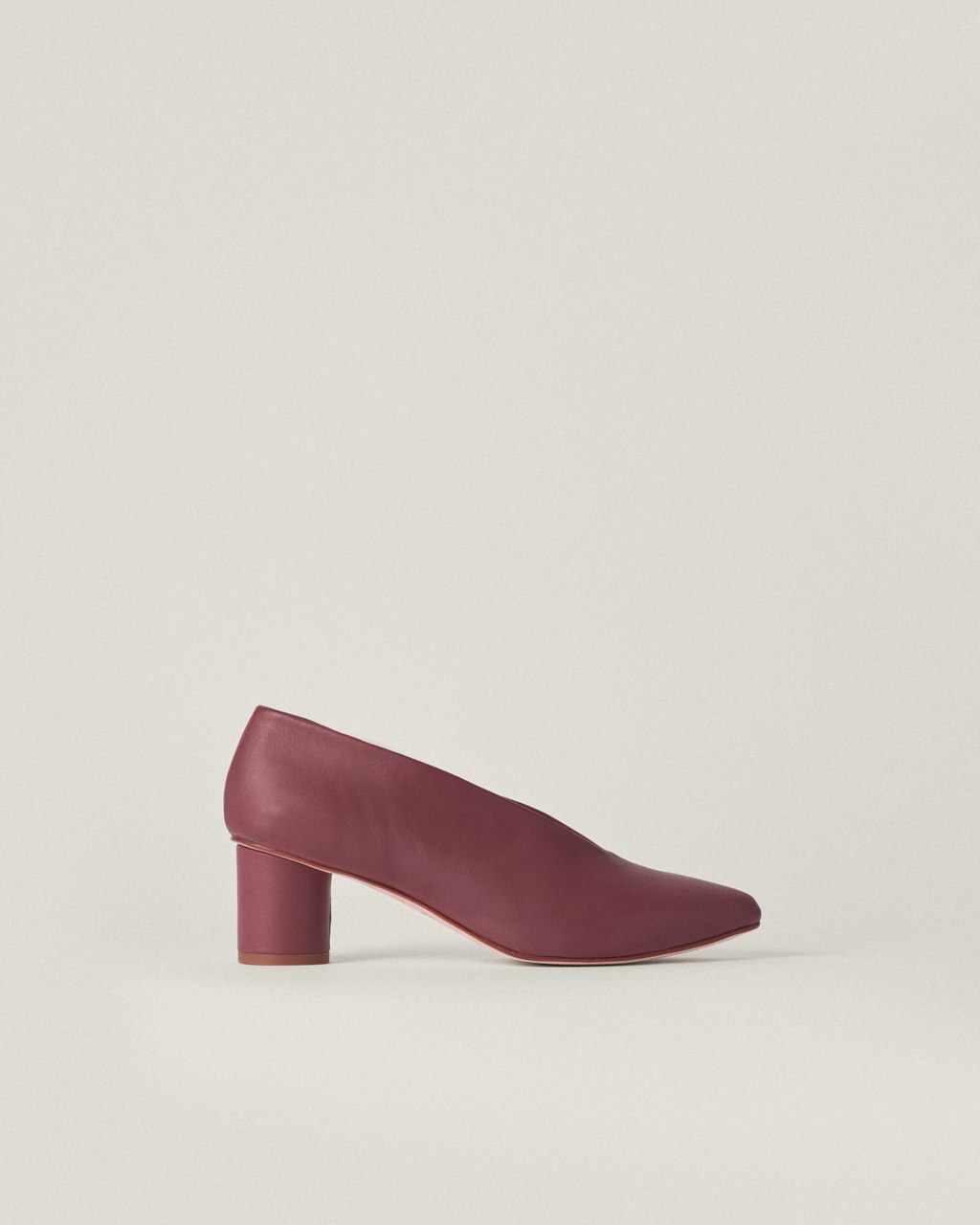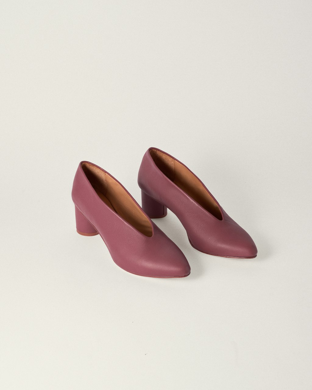 Cylindrical high heel, v-neck pump made in Cowhide leather. Really comfortable and flexible thanks to its glove-type construction.