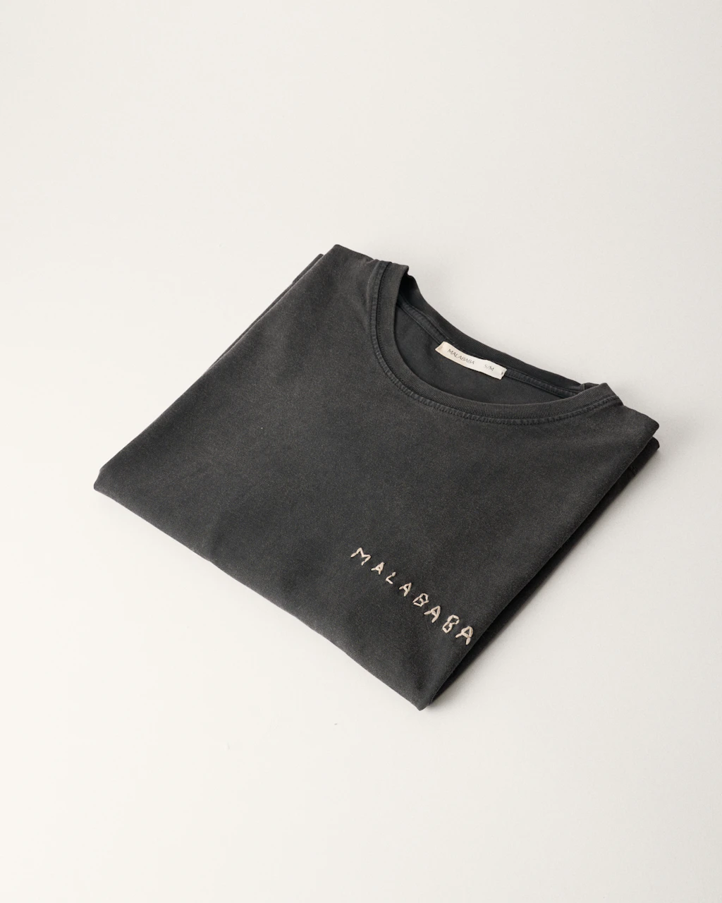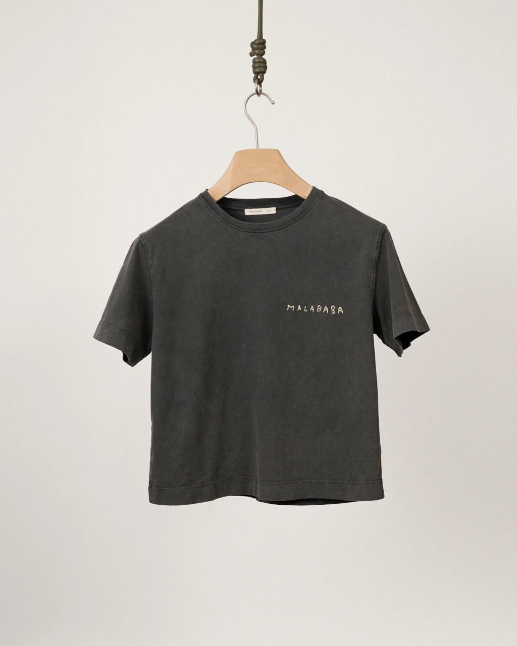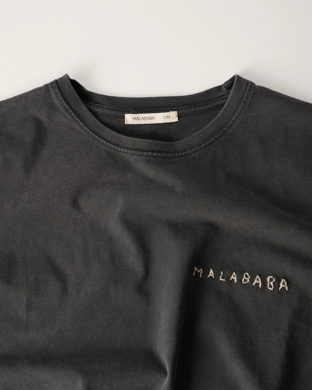 The brand's logo, hand-embroidered by an artisan on each t-shirt, makes every piece truly unique.