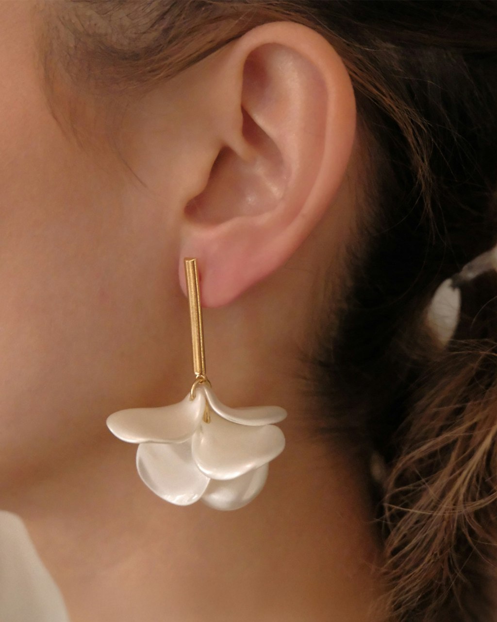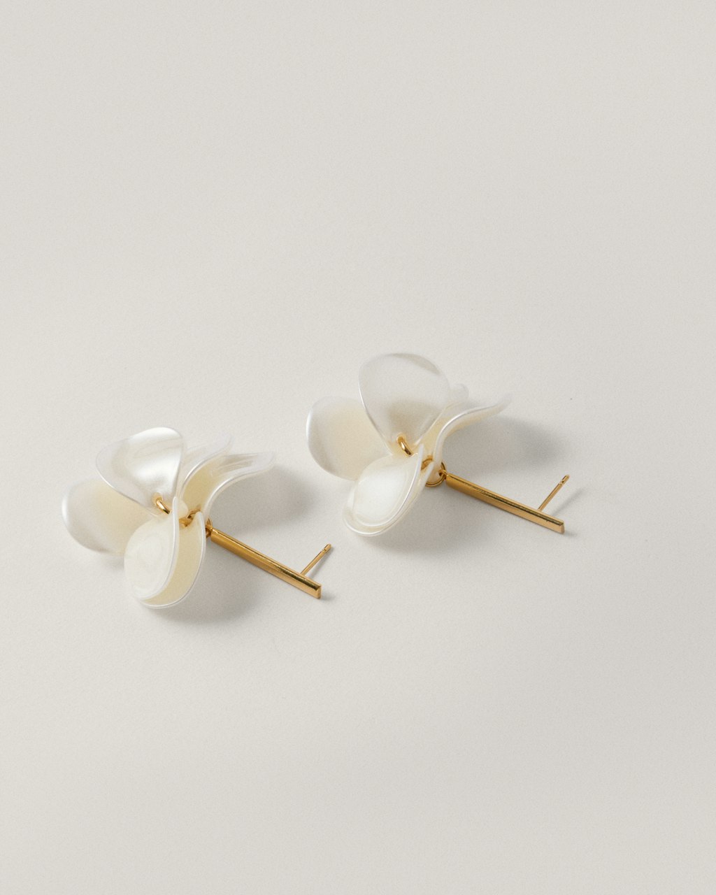 Colorful methacrylate petal motifs medium-sized earrings, pending by a very light bar-shaped closure made in brass, plated in 3micron 18kt gold.