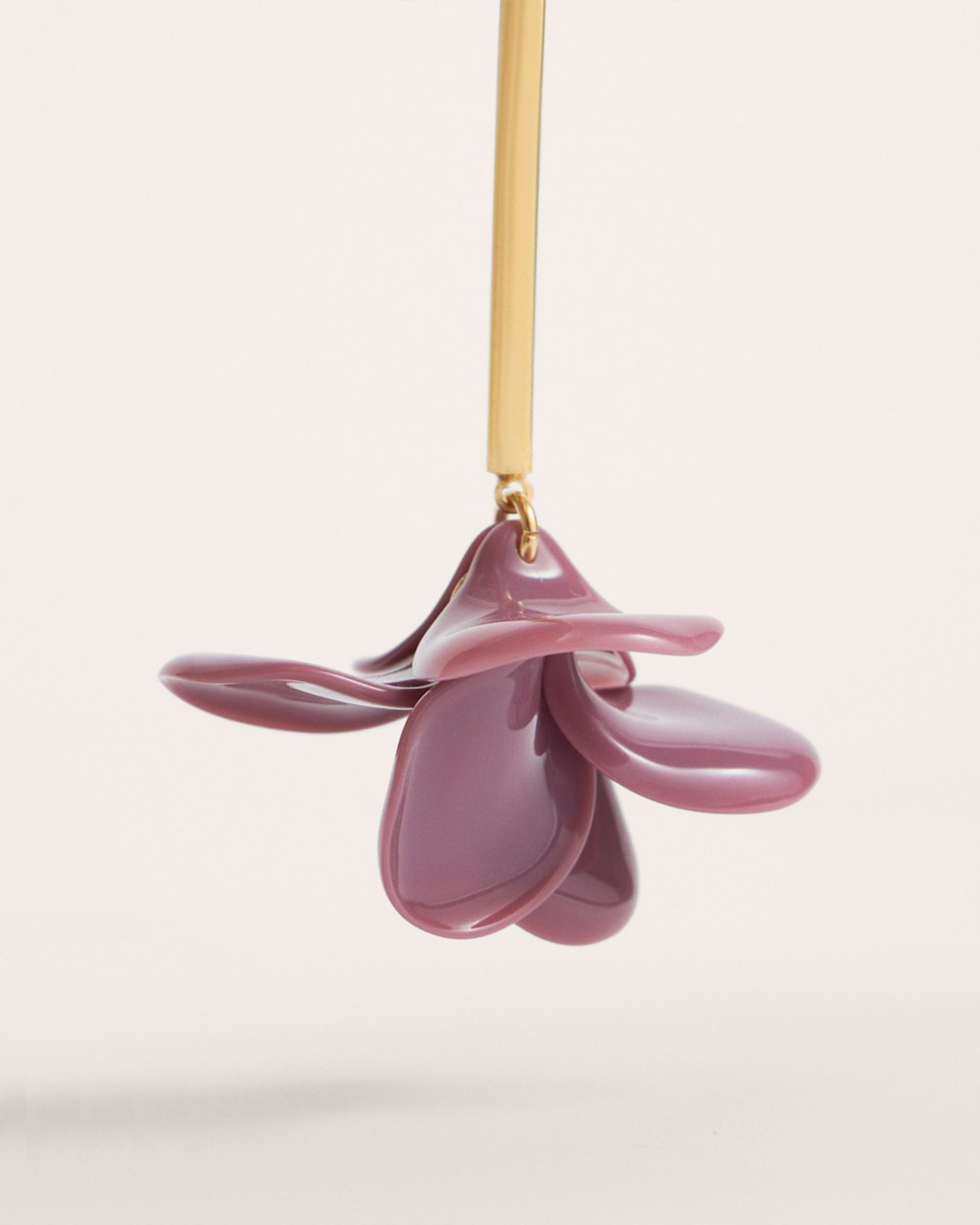 Colorful methacrylate petal motifs long earrings, pending by a very light bar-shaped closure made in brass, plated in 3micron 18kt gold.