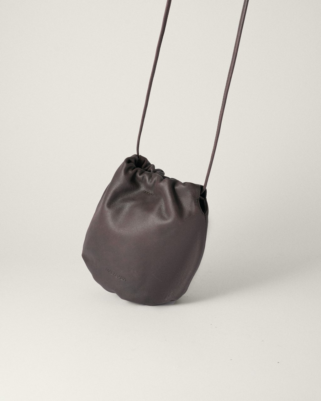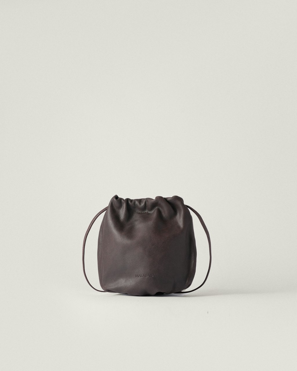 Mini-sized shoulder bag made of pleated cowhide leather with a 100% cotton inner lining.