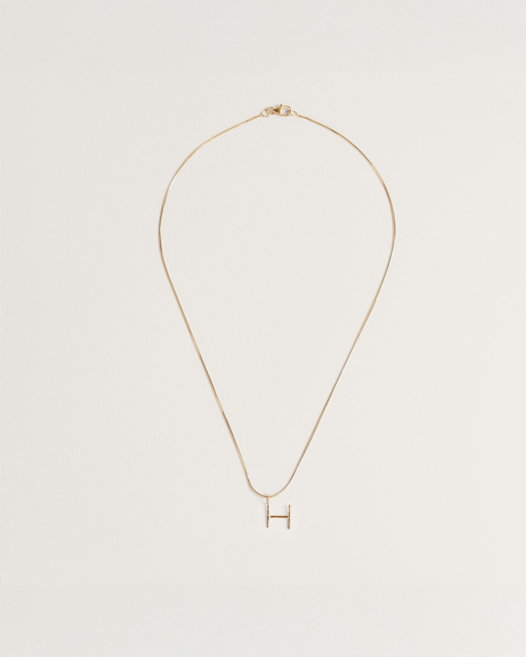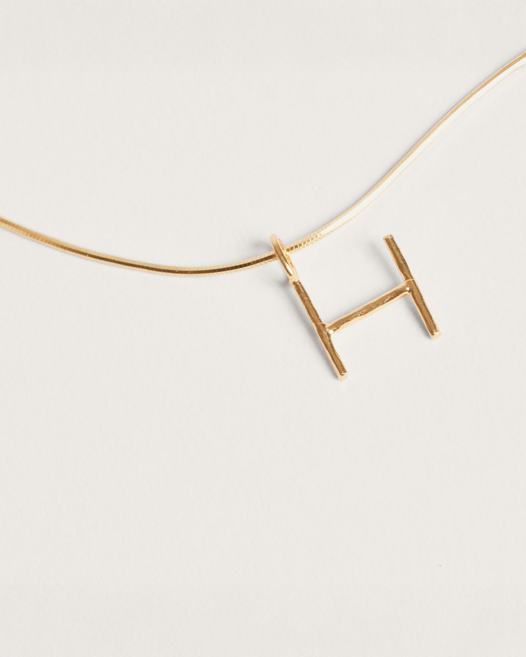 Colgante de plata de ley 925 chapada en oro de 24kt de la letra del abecedario que tú elijas en cadena de plata de ley con un chapado de 3µ (Plaqué d’or) en oro de 18kt.