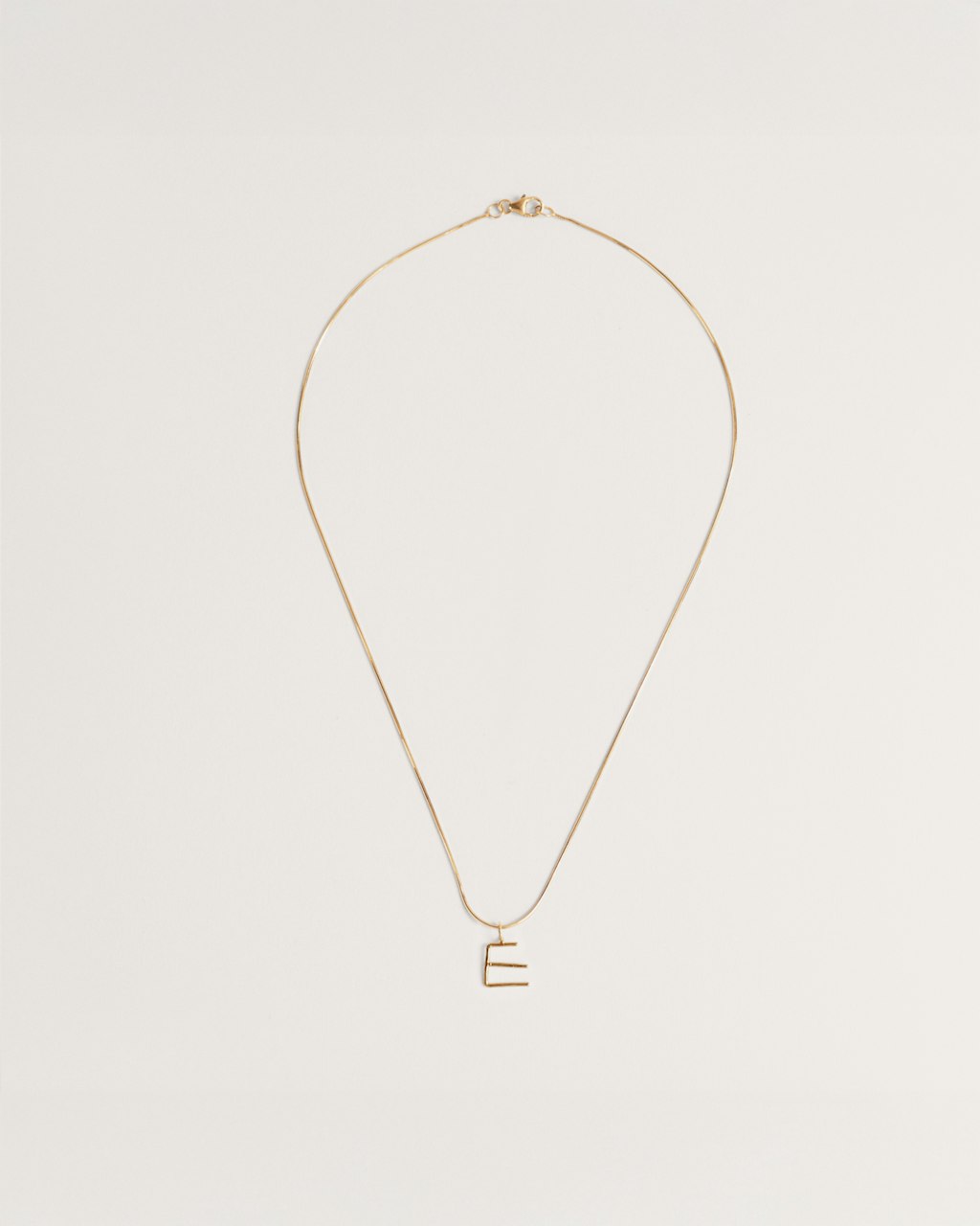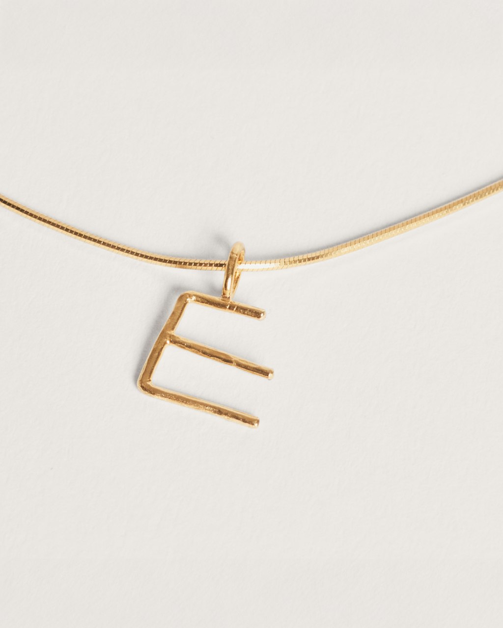 Colgante de plata de ley 925 chapada en oro de 24kt de la letra del abecedario que tú elijas en cadena de plata de ley con un chapado de 3µ (Plaqué d’or) en oro de 18kt.