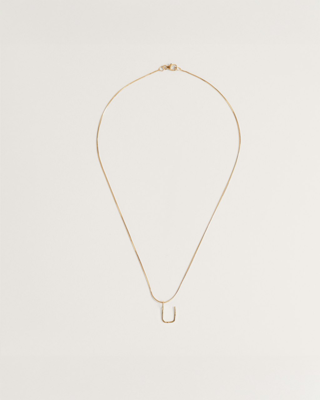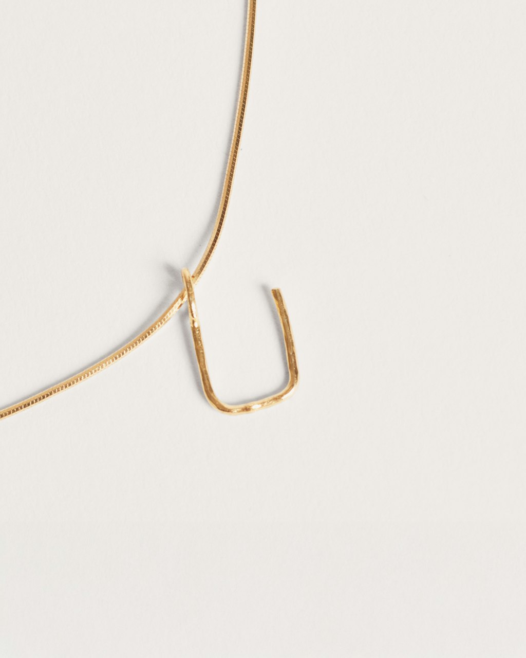 Colgante de plata de ley 925 chapada en oro de 24kt de la letra del abecedario que tú elijas en cadena de plata de ley con un chapado de 3µ (Plaqué d’or) en oro de 18kt.