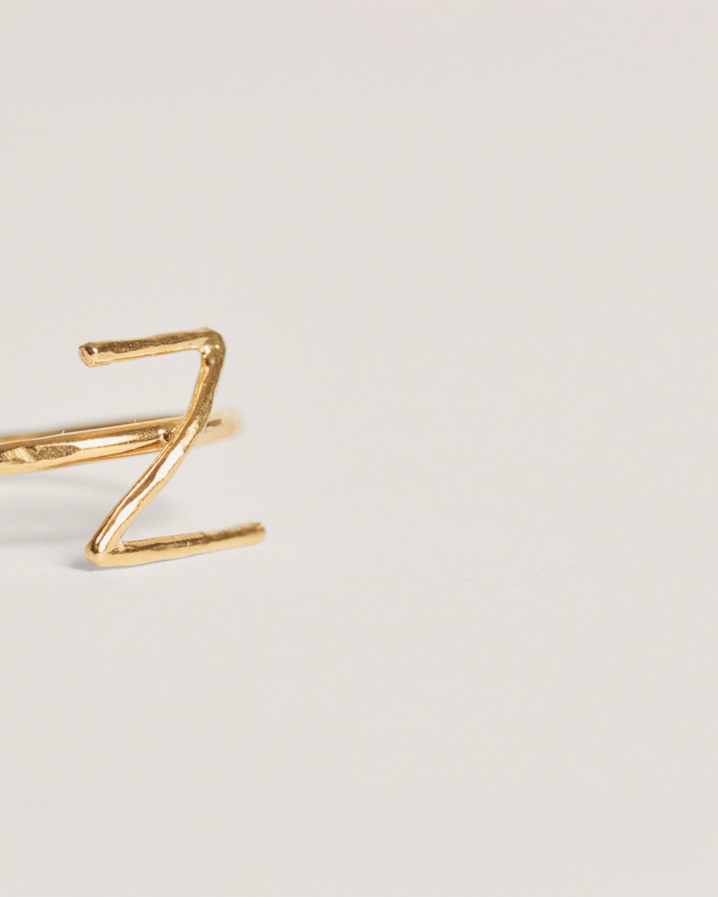 Anillo con detalle de letra del abecedario hecho en plata de ley 925 chapada en oro de 24kt.