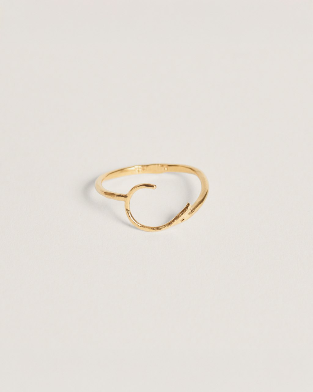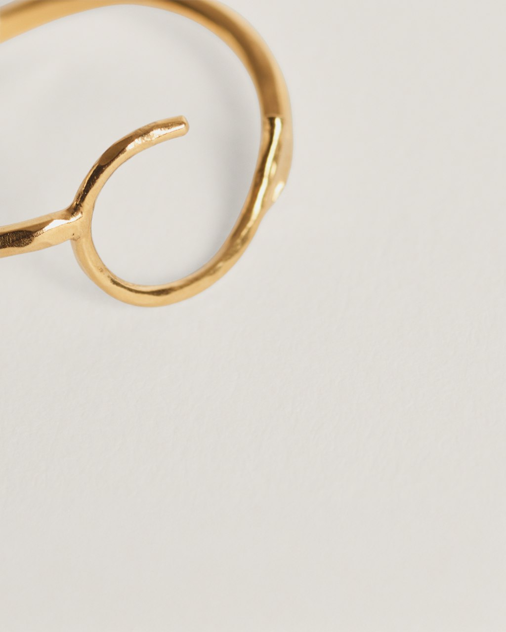 Anillo con detalle de letra del abecedario hecho en plata de ley 925 chapada en oro de 24kt.