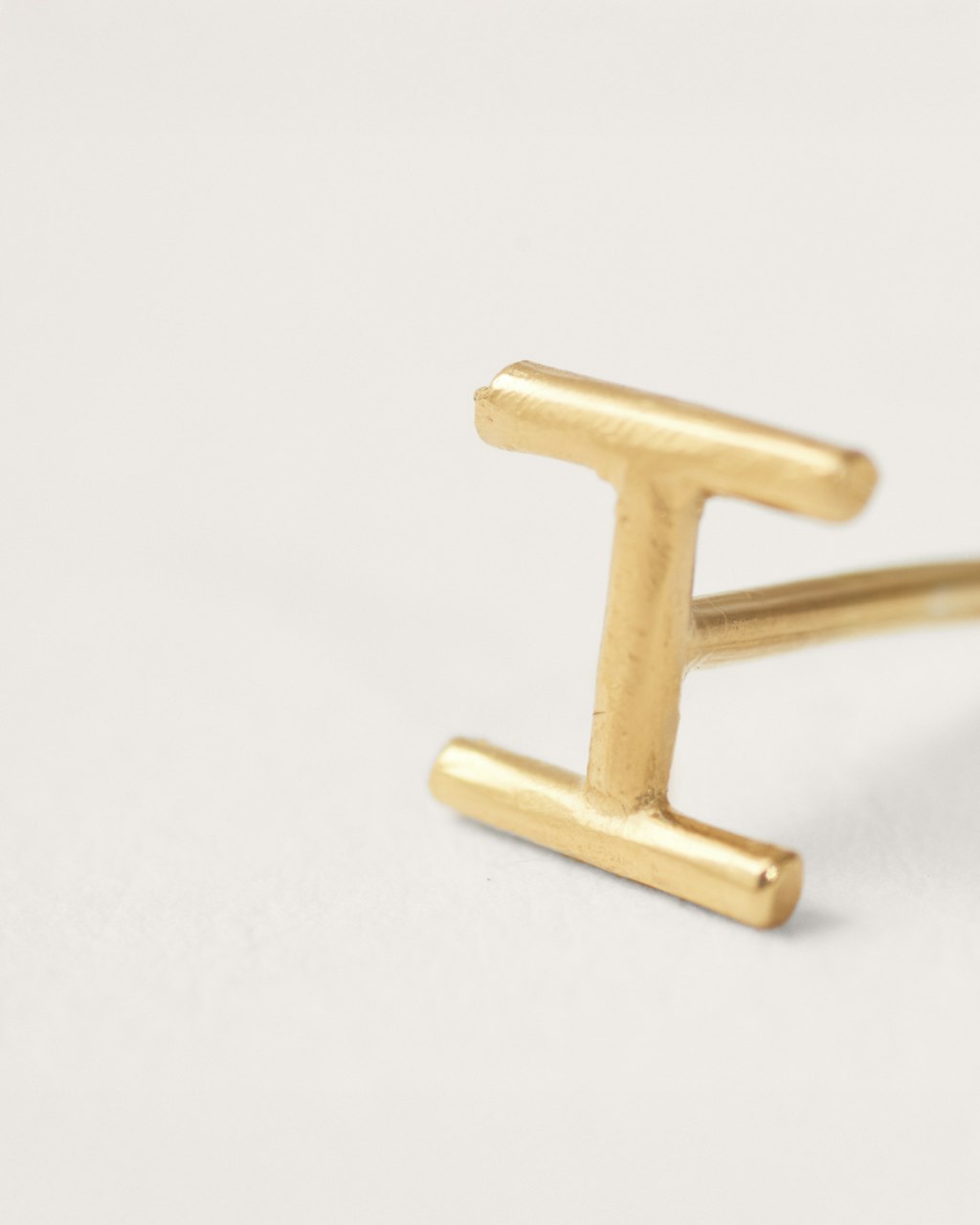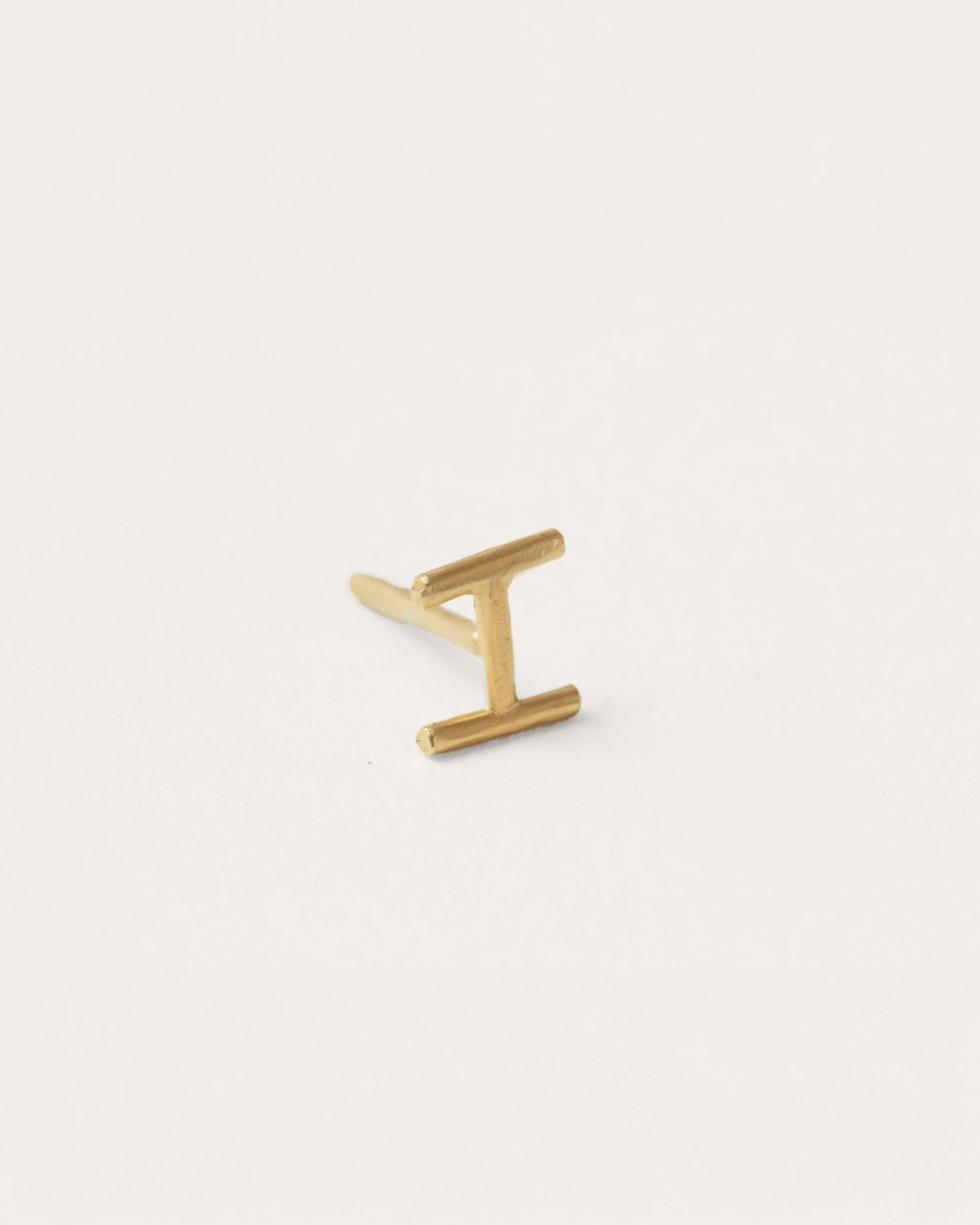 Pendiente individual tamaño mini de la línea Abecé, fabricado en plata de ley 925 chapada en oro de 24kt.