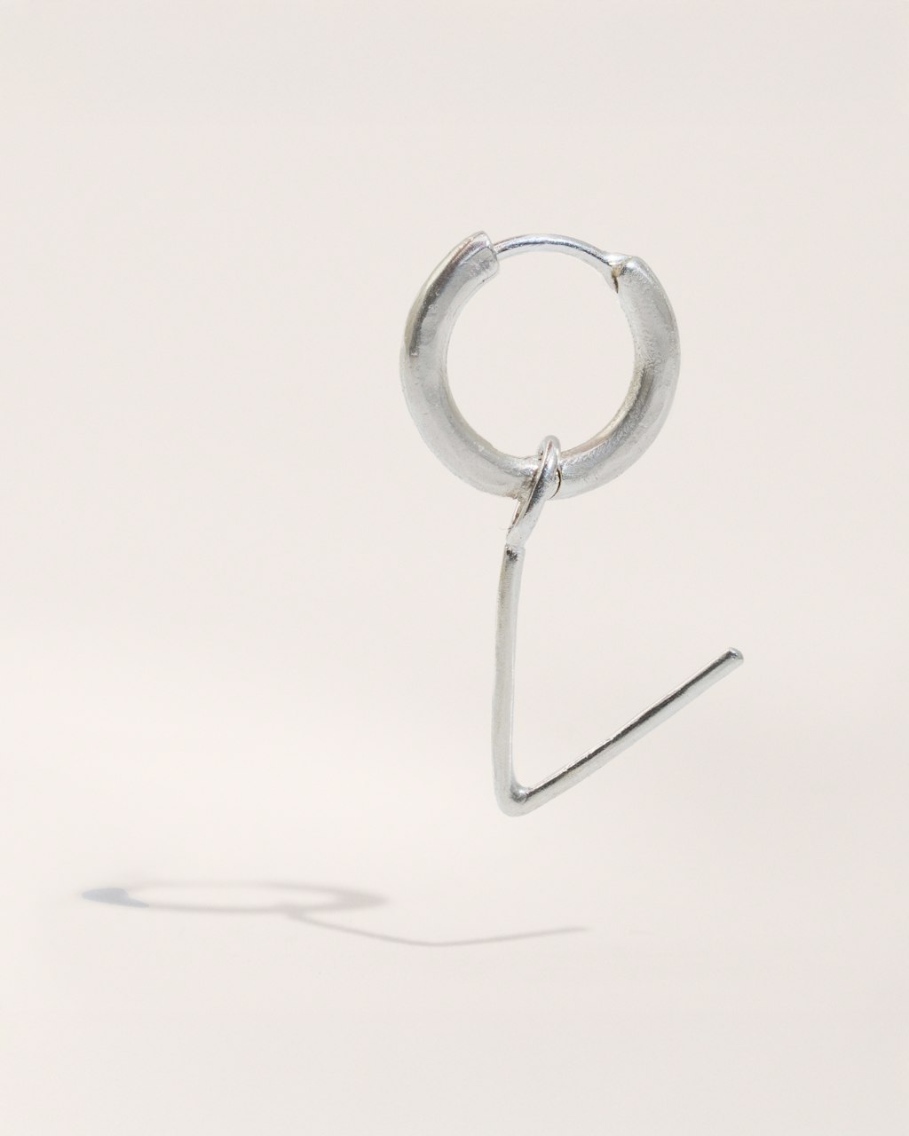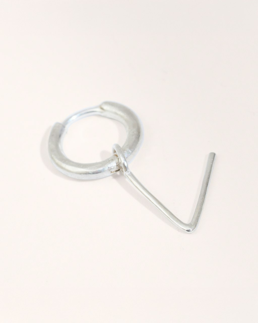 Pendiente individual de la línea Abecé, de arito pequeño con letra colgante fabricado en plata de ley 925.