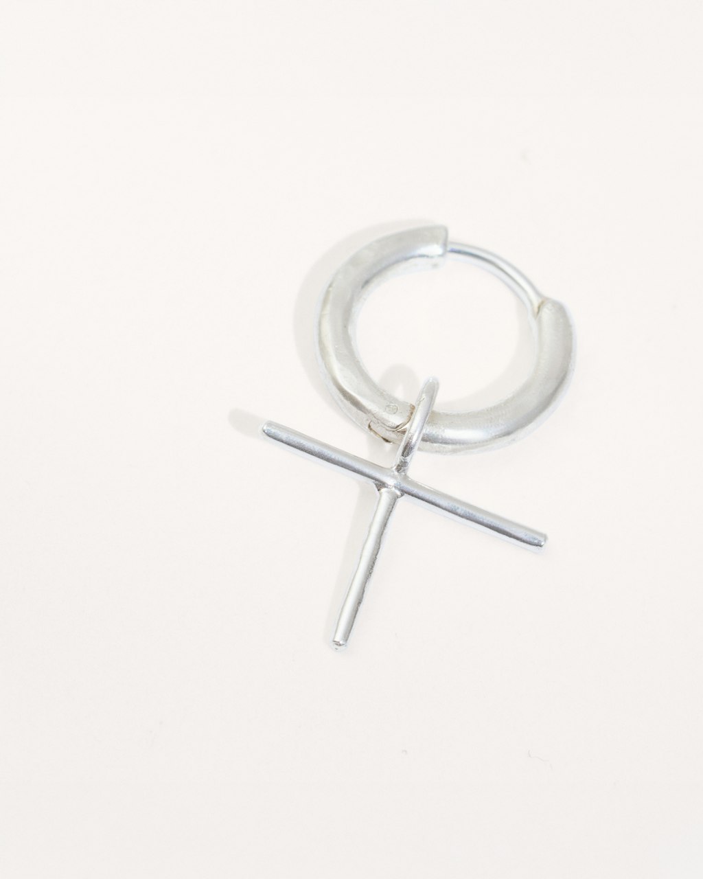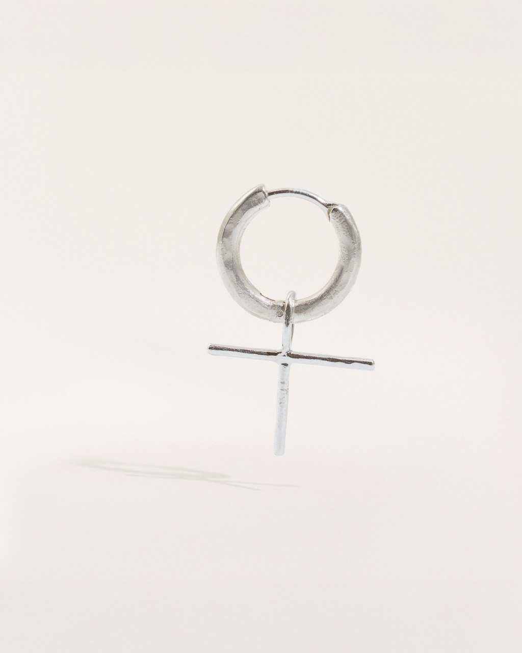 Pendiente individual de la línea Abecé, de arito pequeño con letra colgante fabricado en plata de ley 925.