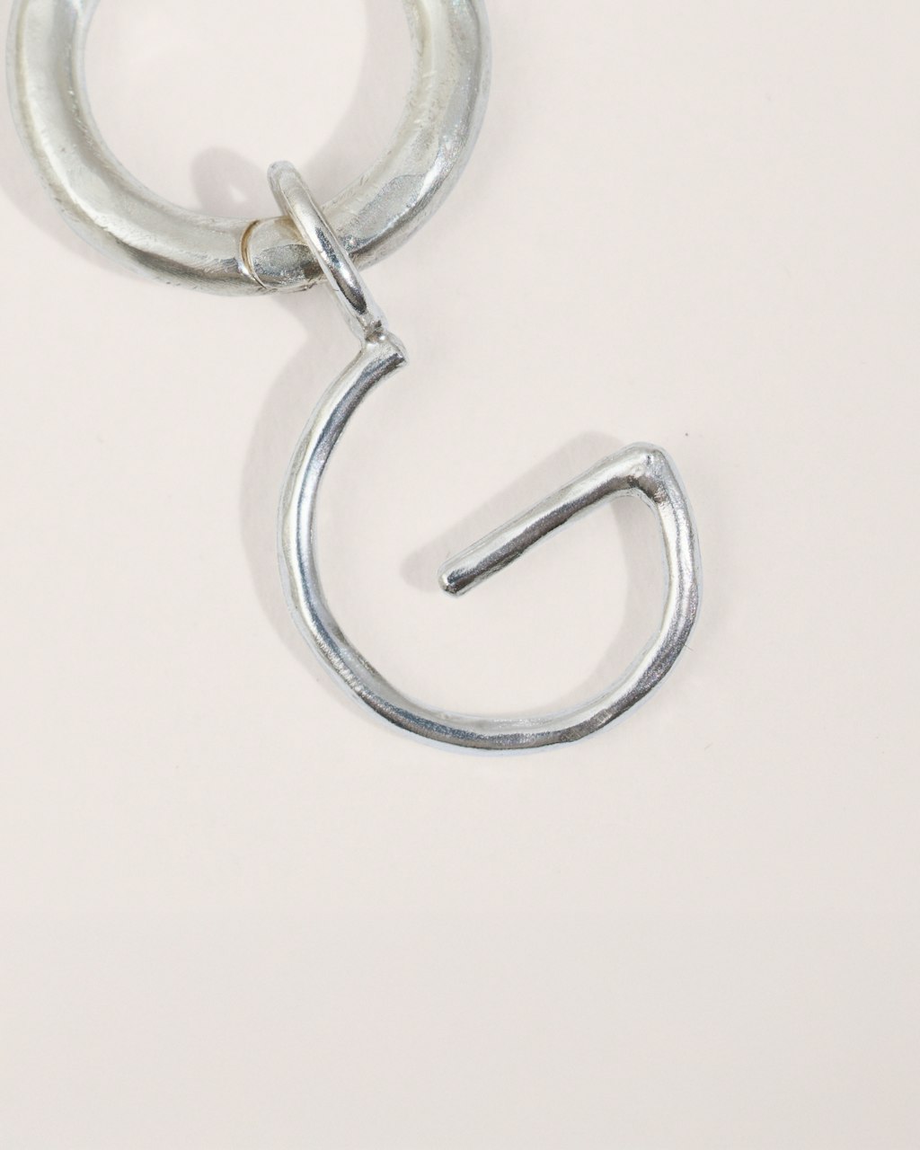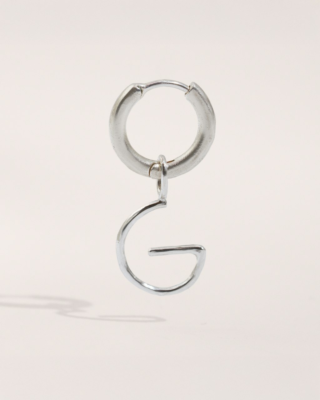 Pendiente individual de la línea Abecé, de arito pequeño con letra colgante fabricado en plata de ley 925.