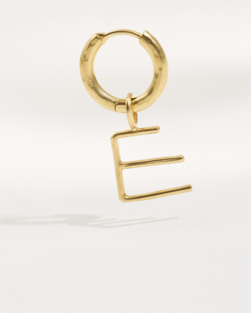 Pendiente individual de la línea Abecé, de arito pequeño con letra colgante fabricado en plata de ley 925 chapada en oro de 18 kt.