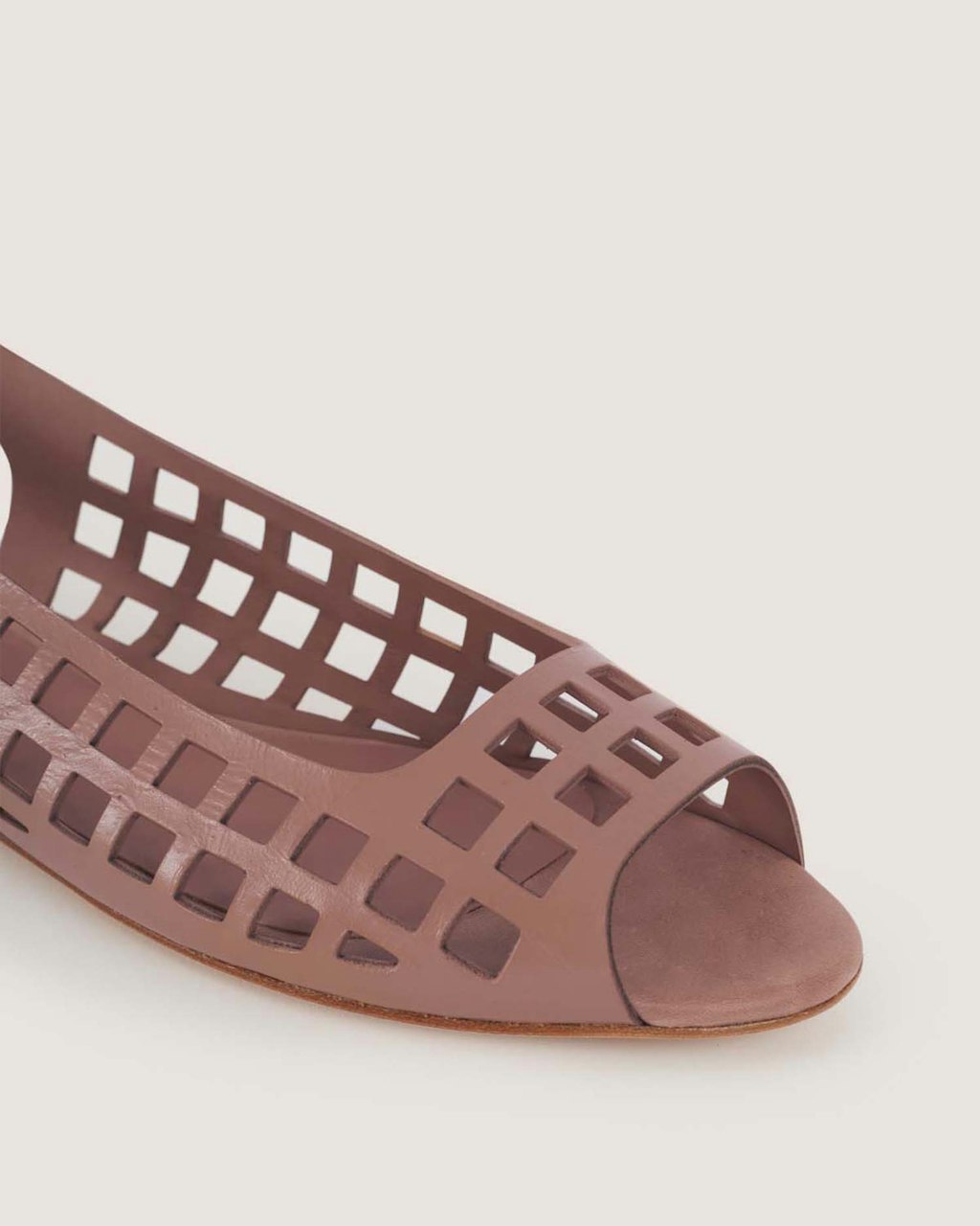 Manoletina con escote en punta, realizada en piel de cordero lavado. Ligera y muy cómoda.