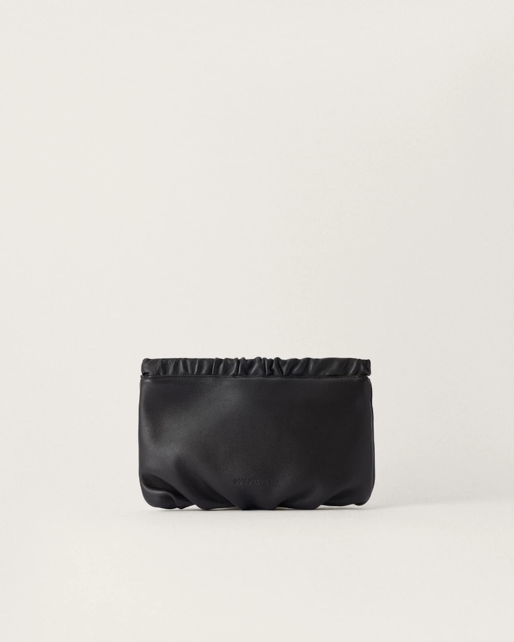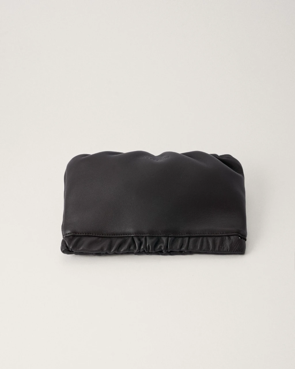 Bolso pequeño tipo estuche, con fruncidos. Hecho artesanalmente en piel de cordero extremadamente suave, y disponible en una gran variedad de colores. Pensado para llevar como bolso de mano tipo clutch.