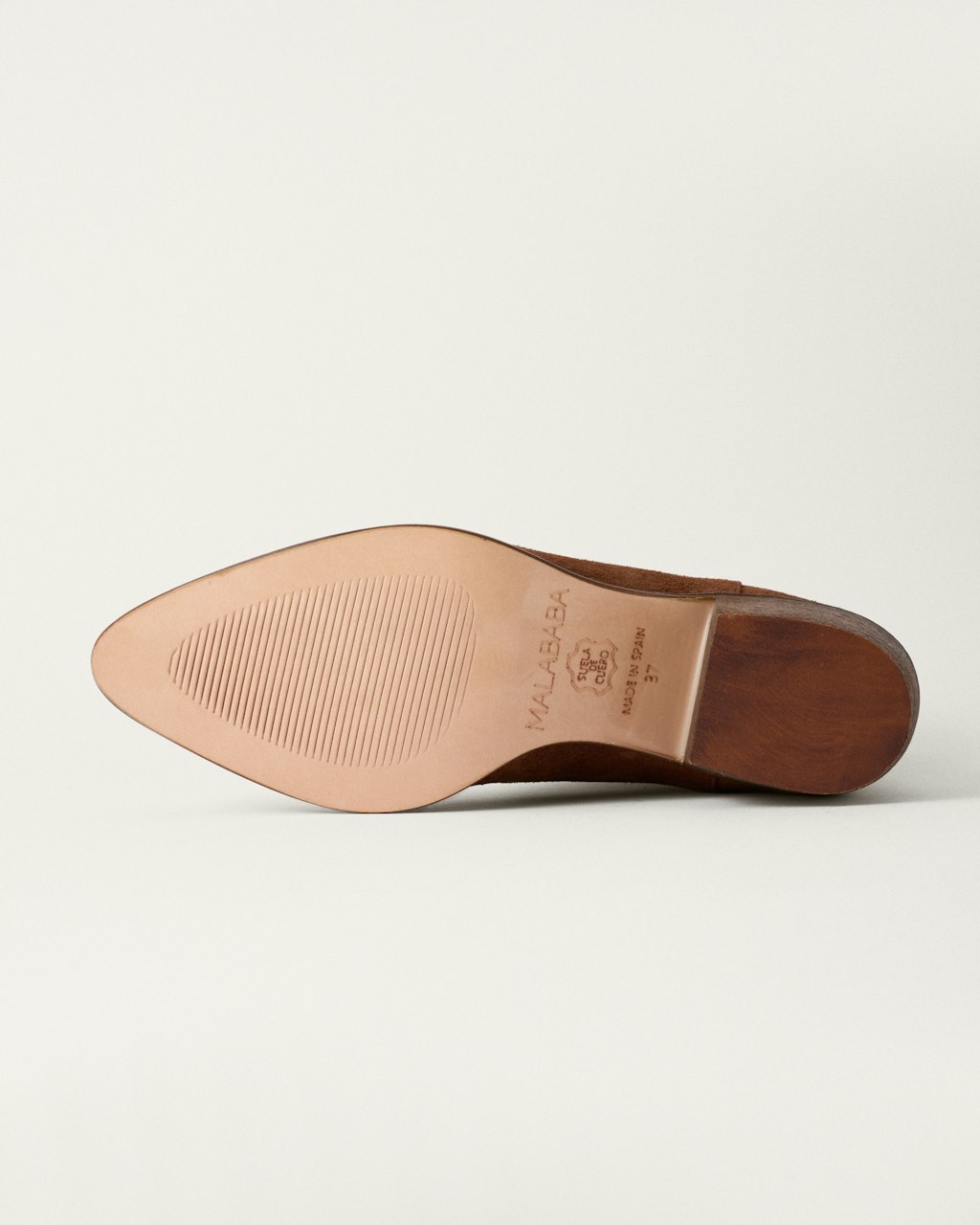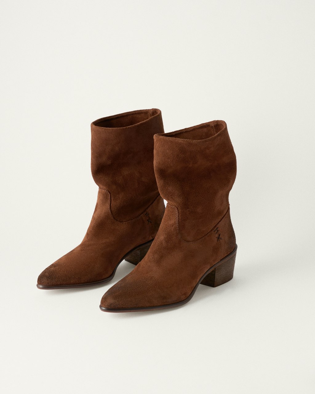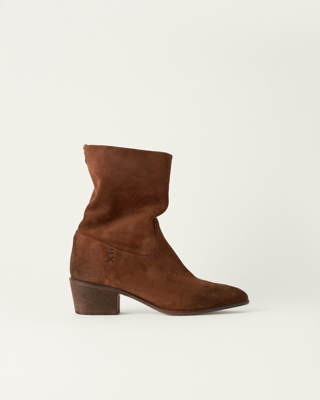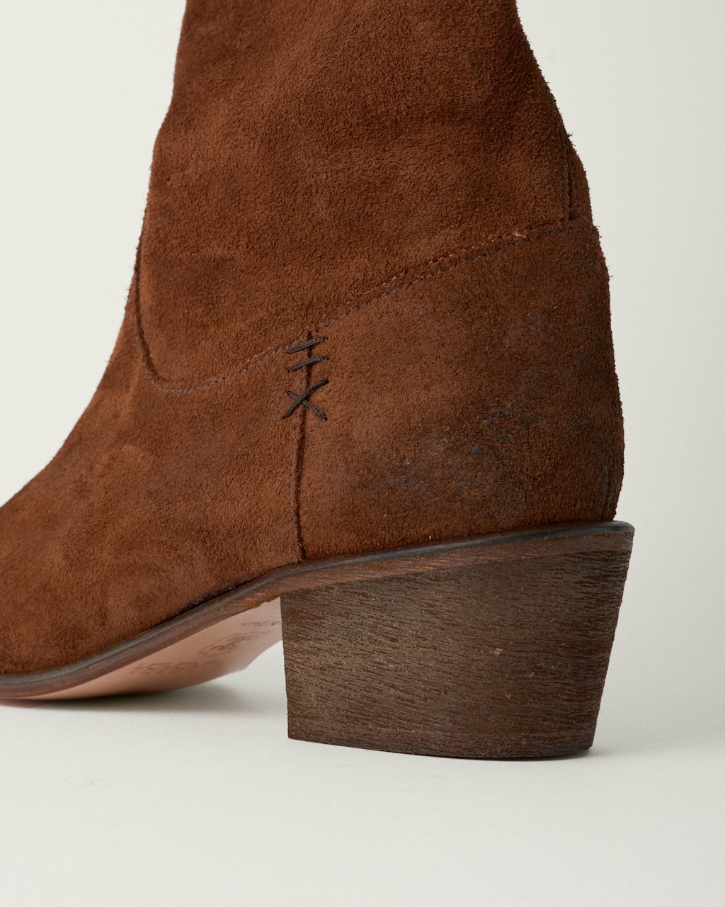 Botín estilo cowboy realizado en serraje de vacuno con detalles de costuras.