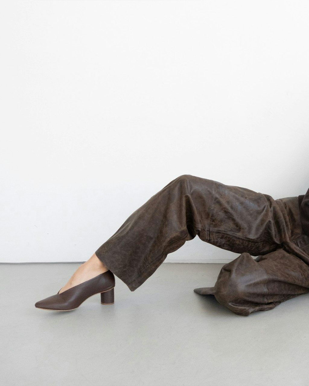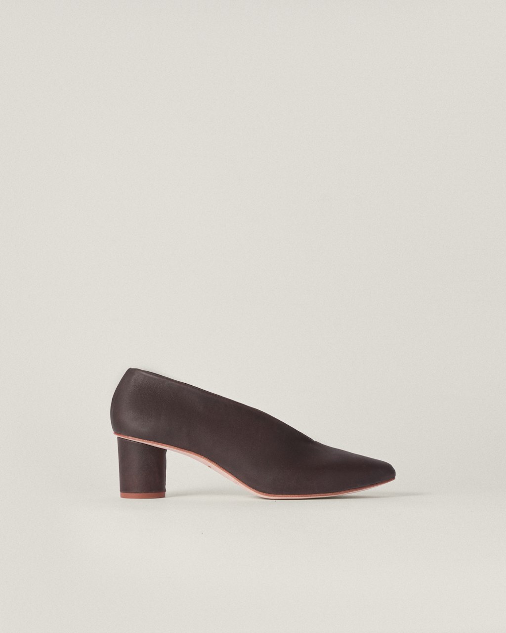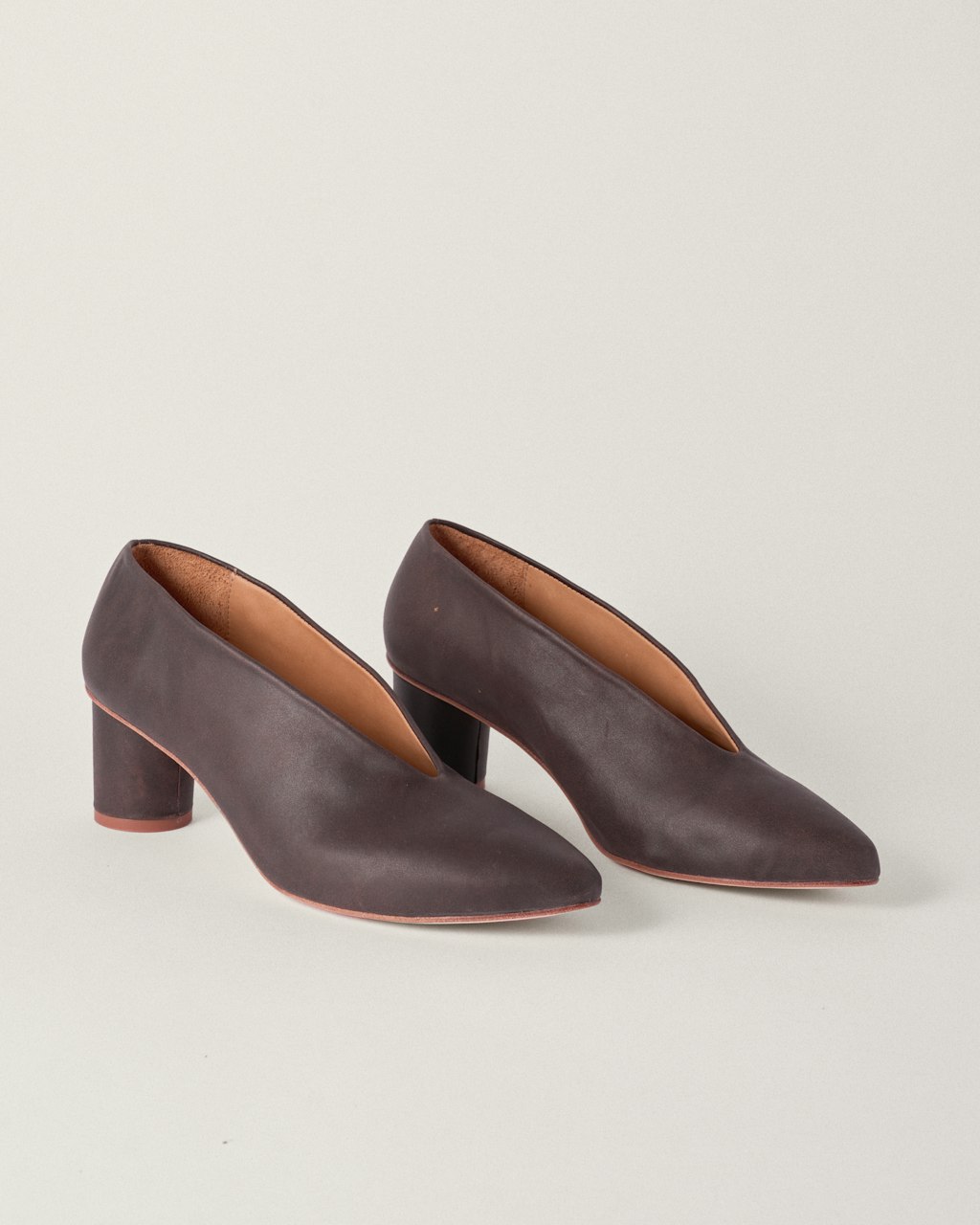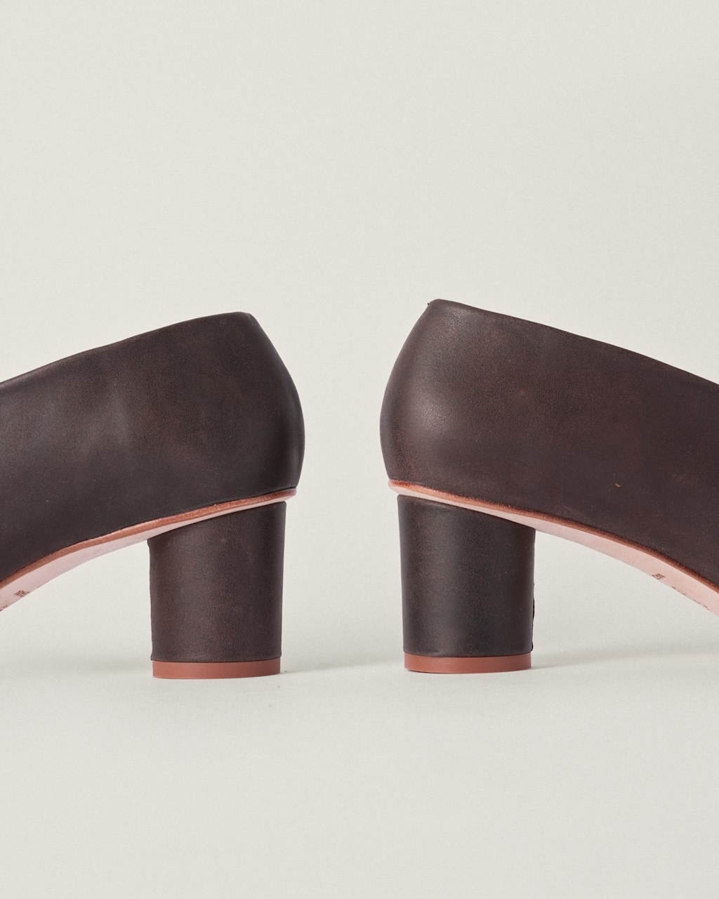 Salón de tacón medio cilíndrico realizado en piel bovina. Muy cómodo y flexible gracias a su construcción globo que envuelve todo el pie, ayudando a que sea un zapato muy estable y cómodo, así como a la suavidad y el tacto de la piel.
