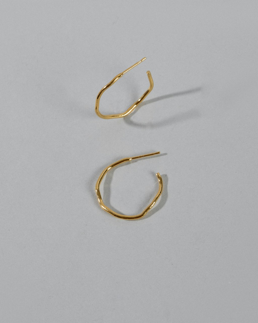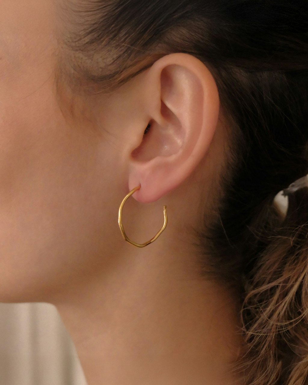 Pendientes de aro tamaño mediano realizados en plata de ley 925 chapada en 3 micras de oro de 18kt.