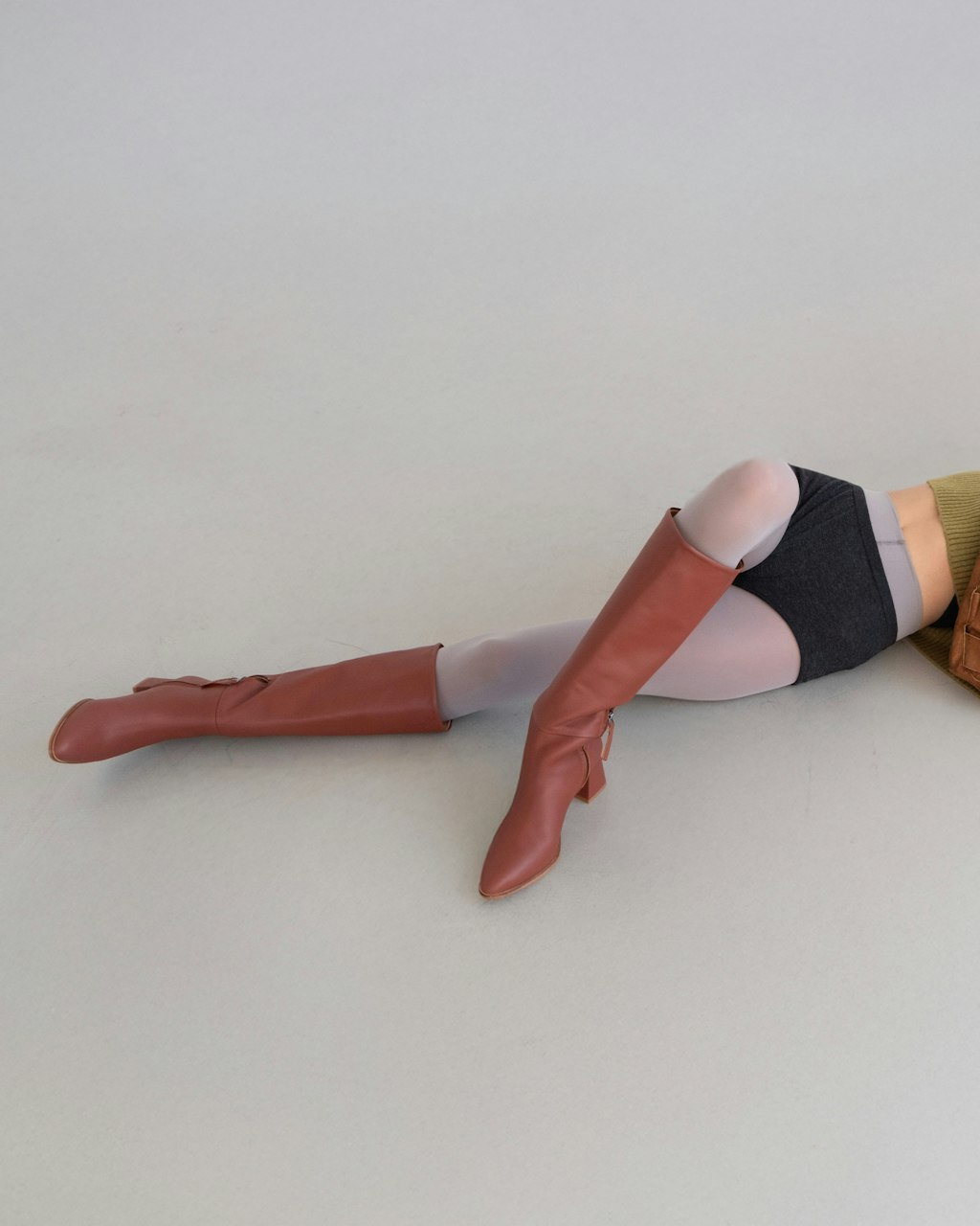 Bota de caña alta de tacón de estilo urbano y elegante, hecha en piel de vacuno de mano amable y tacto suave. Con cierre de cremallera para que sea más cómoda de poner y quitar, y tacón de altura media, asegurando confort y versatilidad, puede utilizarse de forma más casual o con un look más arreglado.