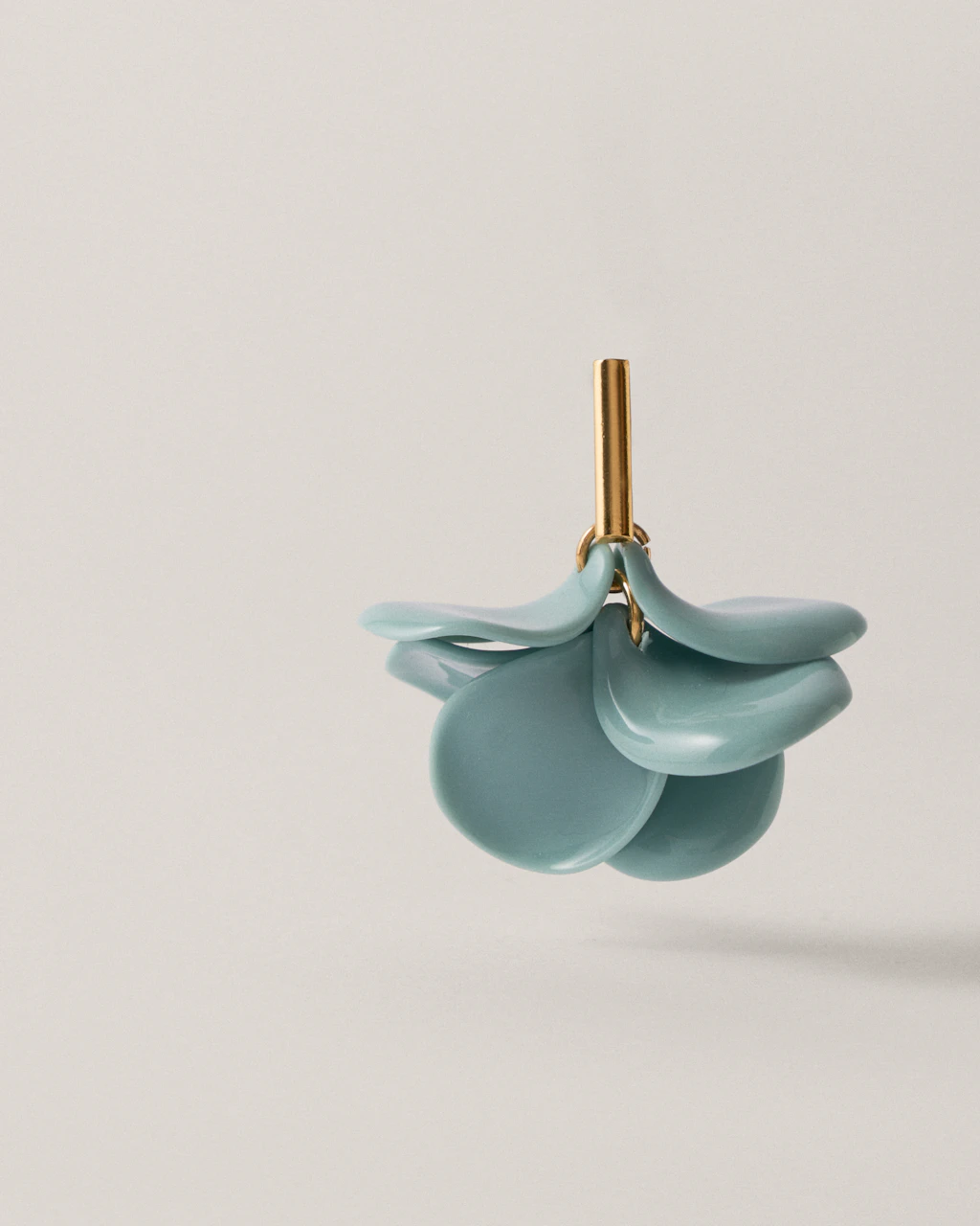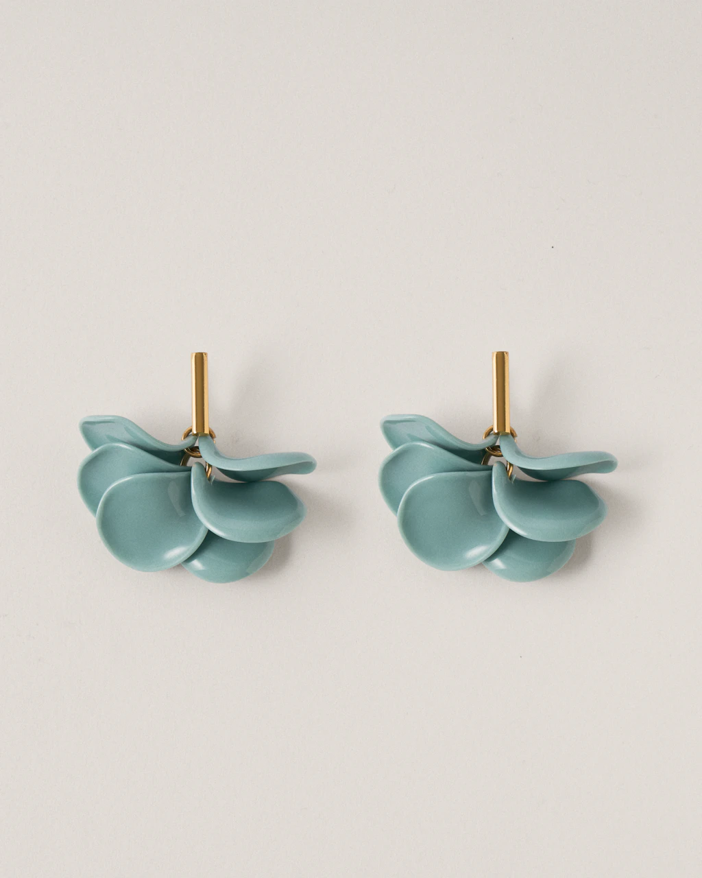 Pendientes de largo corto con coloridos motivos de pétalos hechos en metacrilato, de peso muy ligeros, colgados sobre un cierre con forma de barra hecho de latón y chapado en 3 micras en oro de 18kt.