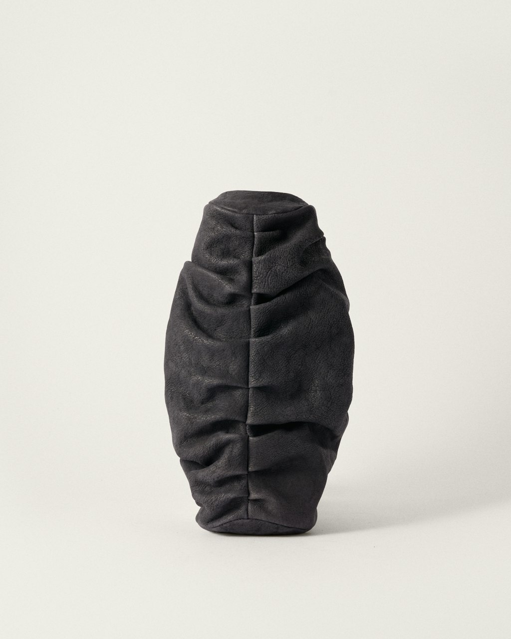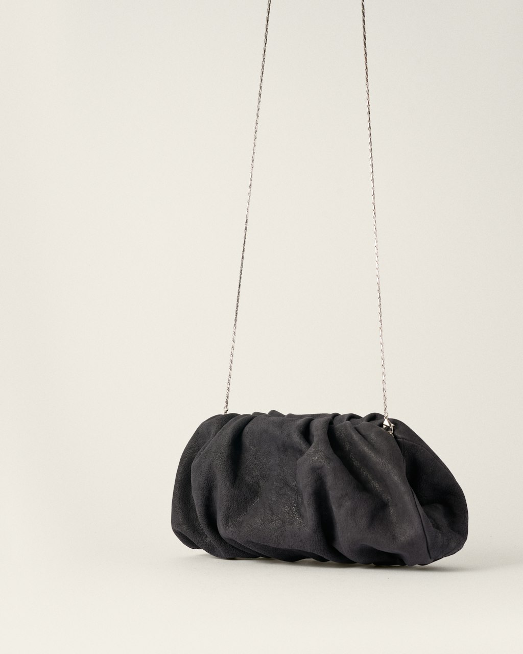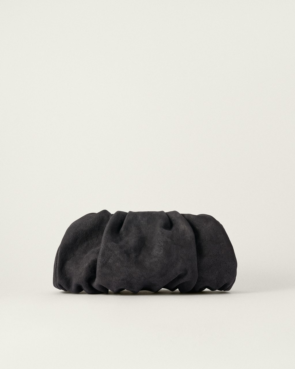 Clutch mediano de estructura fruncida, realizado en cordero con un acabado tipo destroyed.