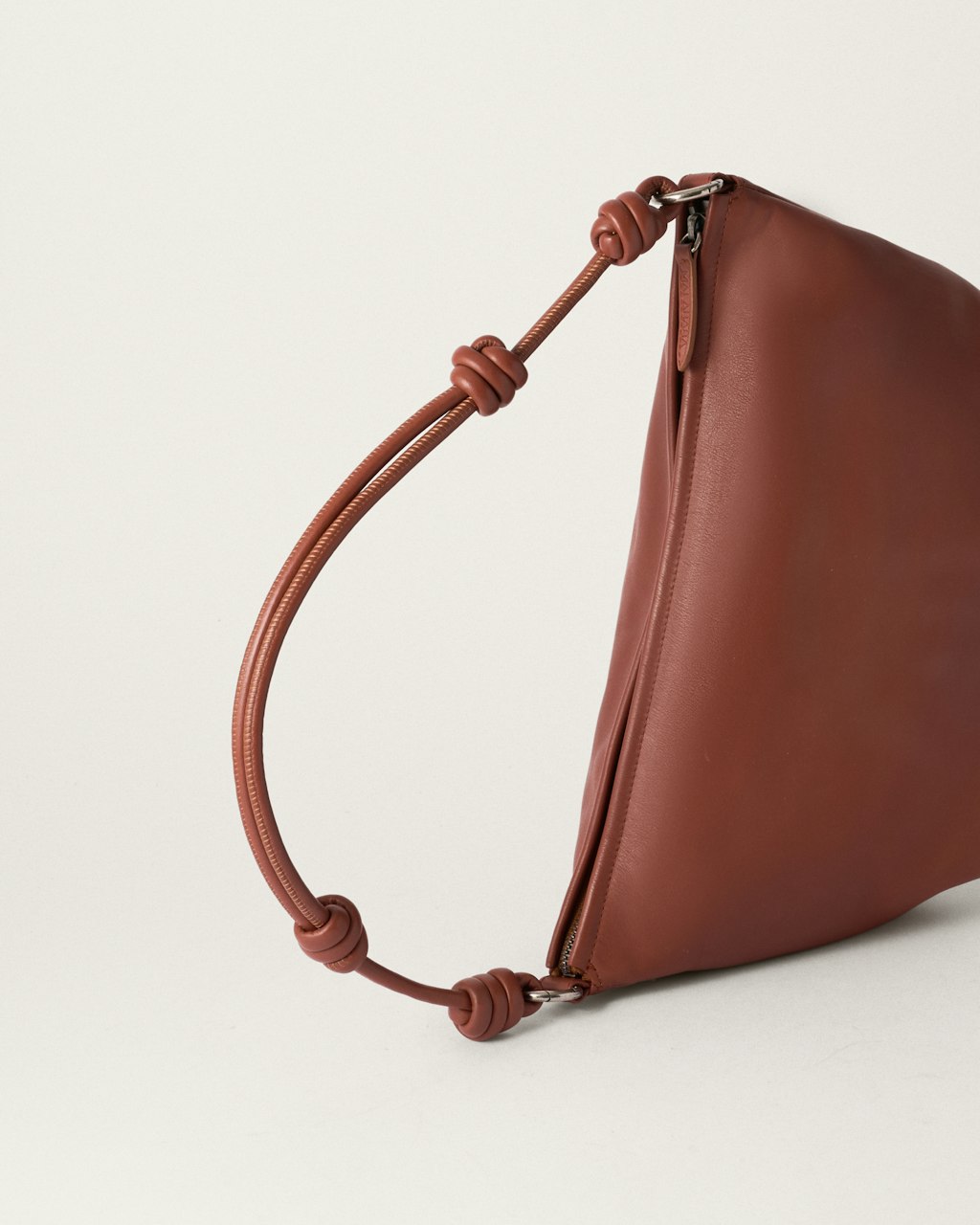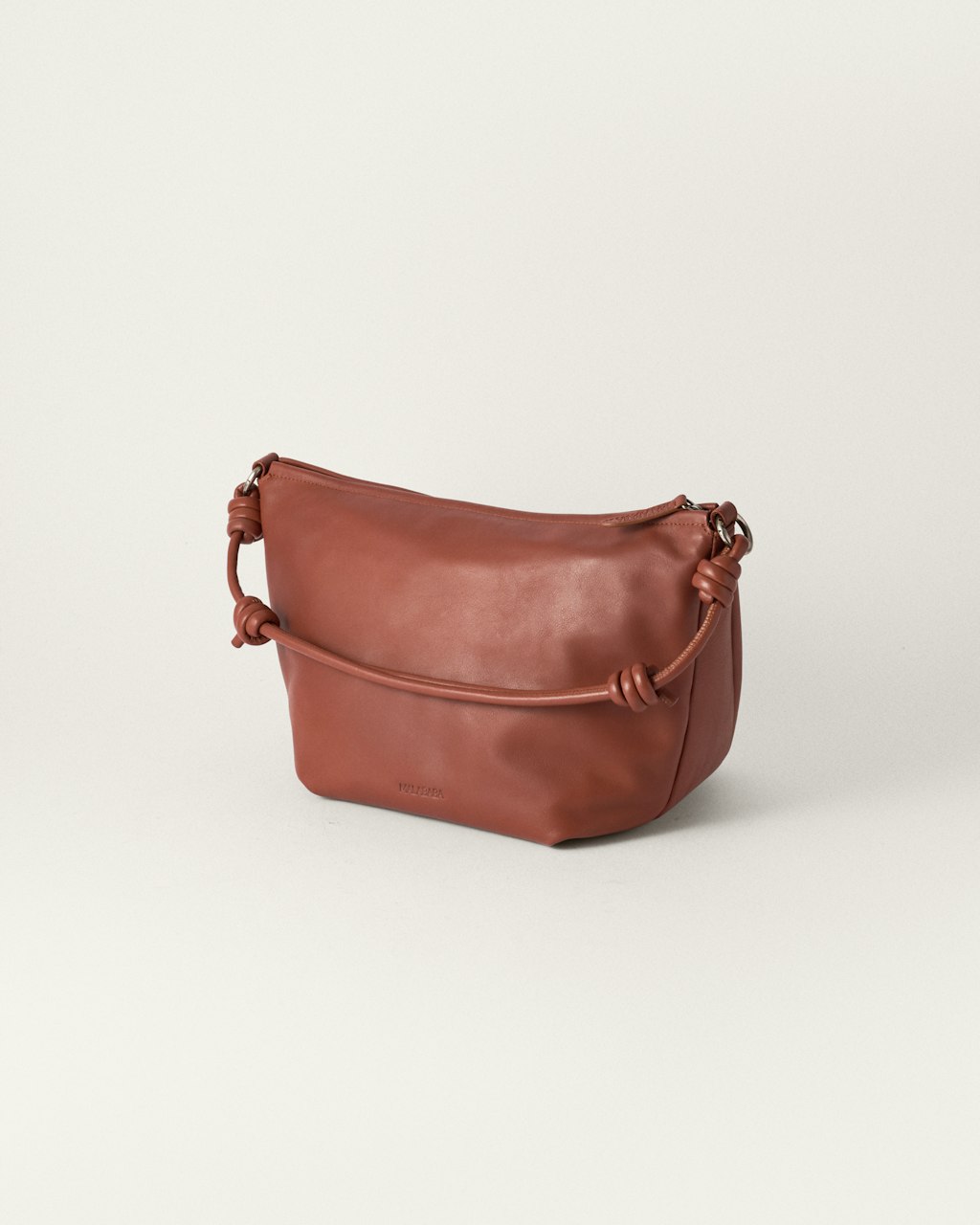Bolso de hombro mediano realizado en piel de vacuno y con forro interior de algodón.