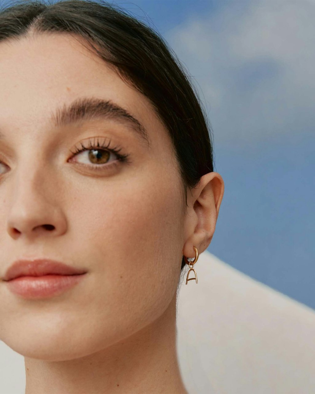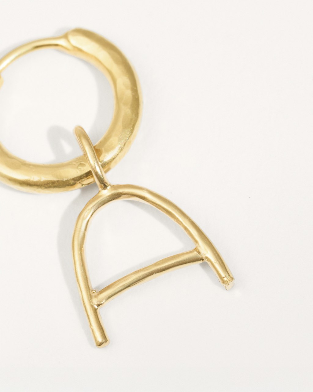 Individual 18kt gold plated small hoop earring, made in sterling silver with a pendant letter motif.