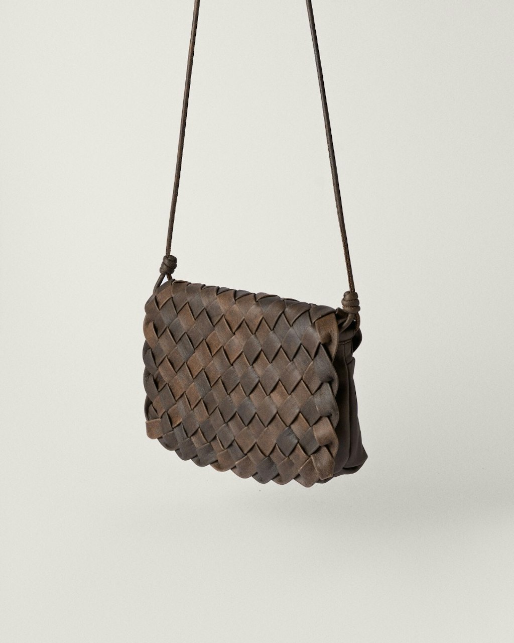 Measurements: 24 cm high, 26 cm wide, 114 cm leather shoulder strap.