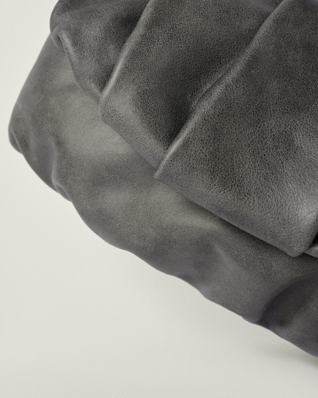 The gathered pleats are carefully handmade by our leather expert artisans.