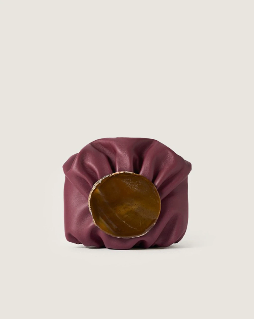 Medium-sized clutch with gathered structure made in Spanish entrefino lambskin, extremely soft and pleasant. Each bag features an authentic, natural and unique agate stone on its flap, selected by our design team, therefore each bag may differ from the images on our web.