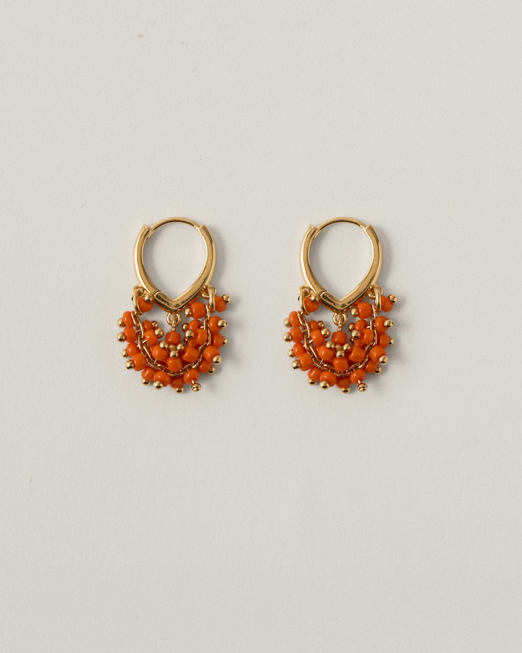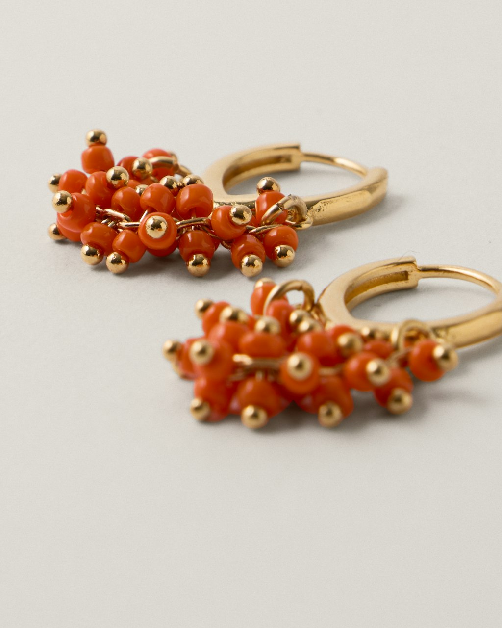 Earing with small groups of tiny balls, hanging from the piece, made of brass and plated in 3 microns of 18kt gold