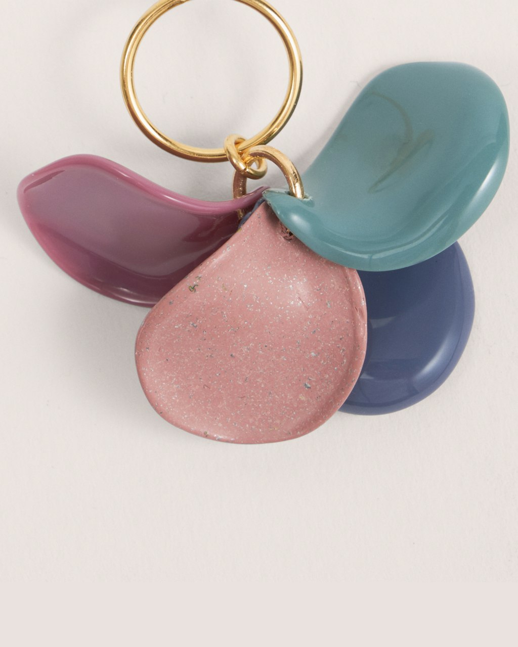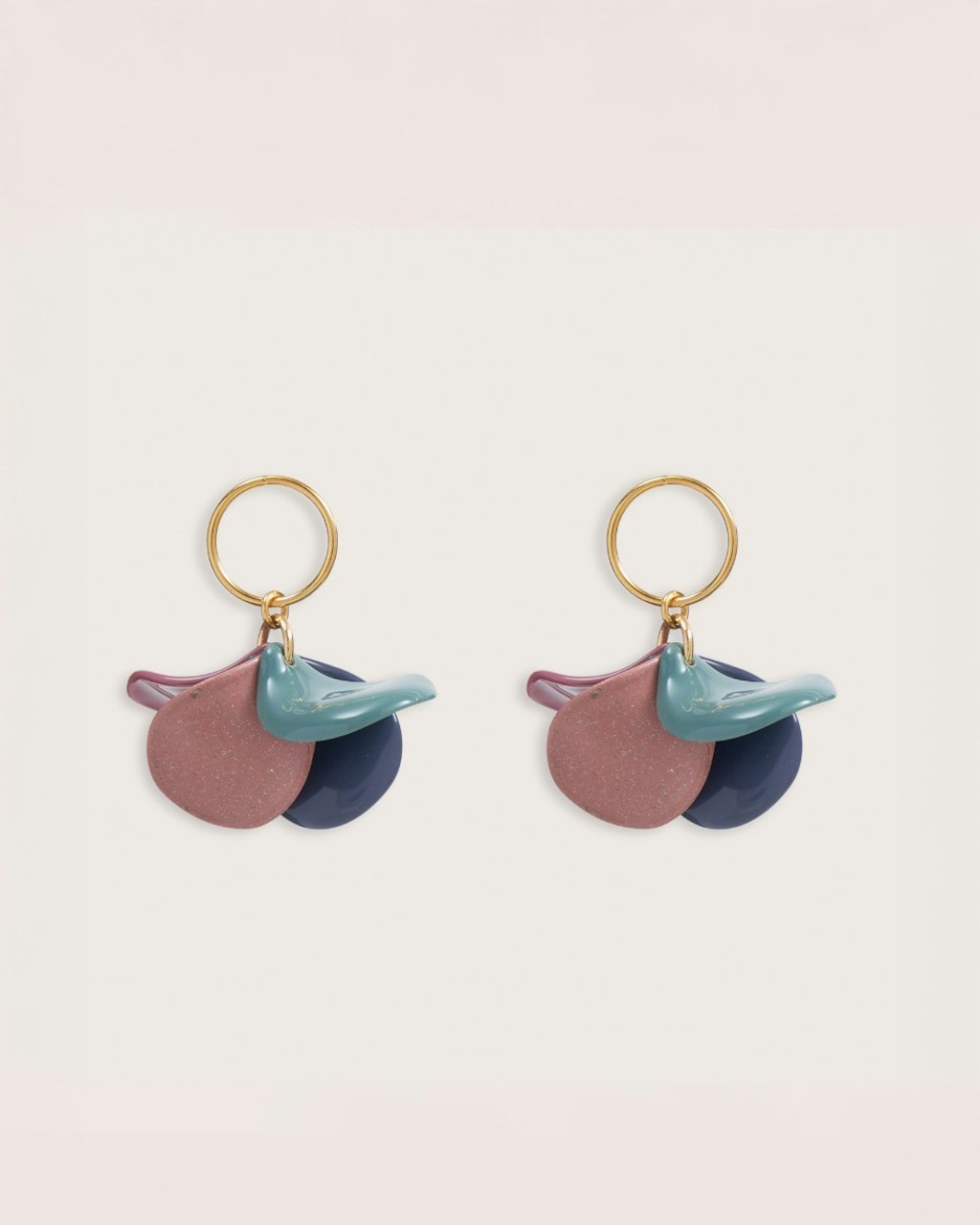 Methacrylate petal motifs very light Brass hanging on gold plated brass large hoop. Hoop with clousure.
