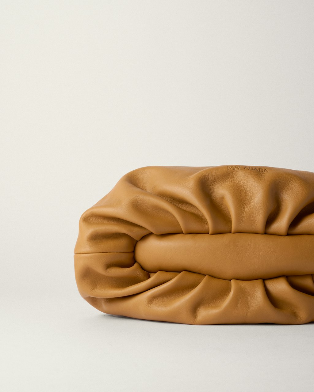 Medium size shoulder bag made of pleated cowhide leather with a cotton inner lining.