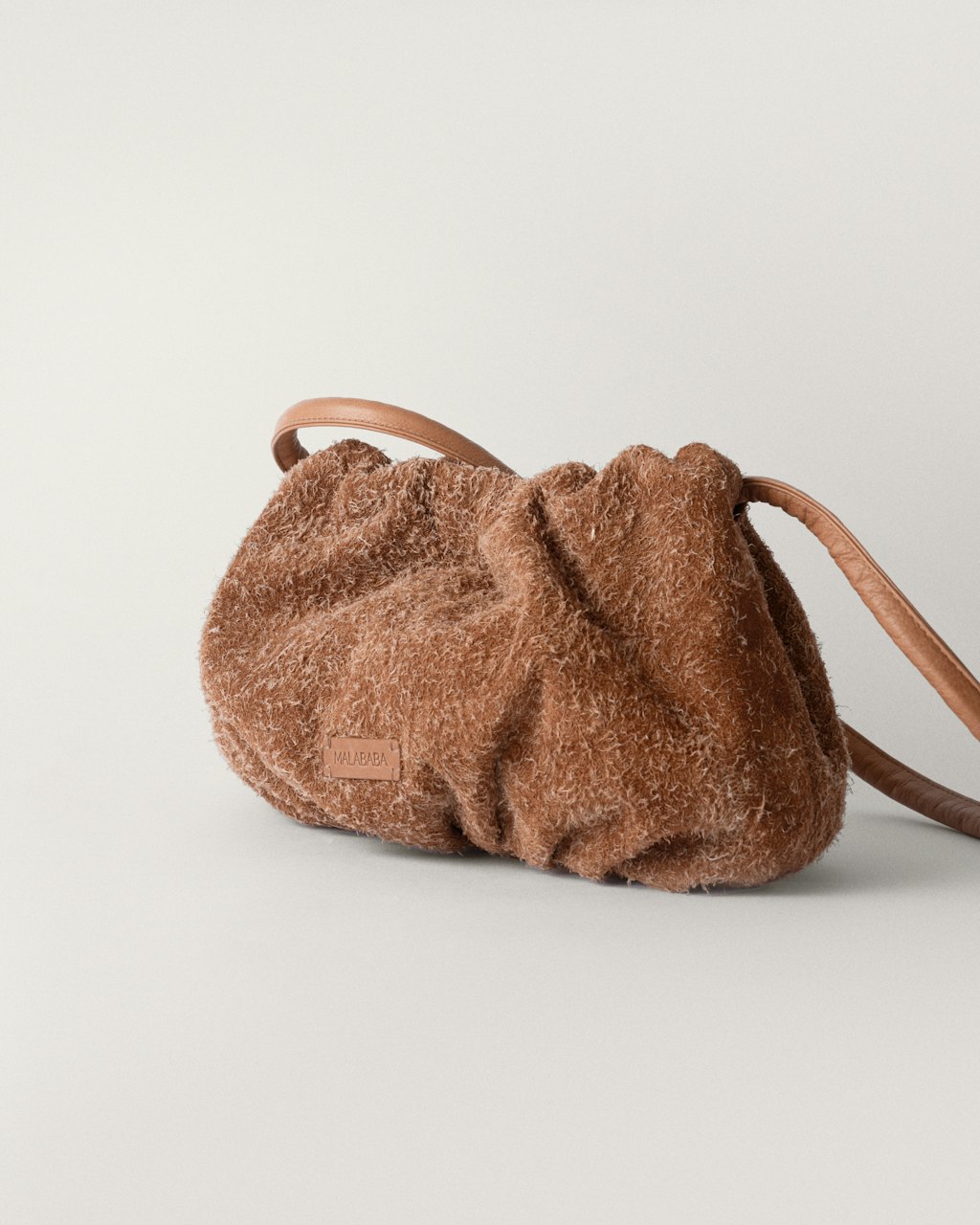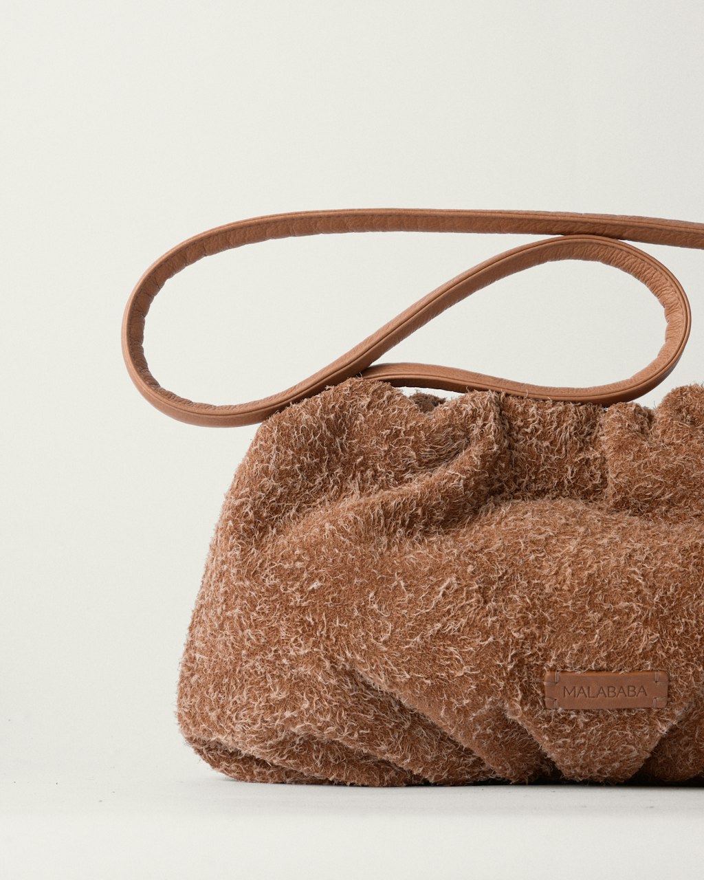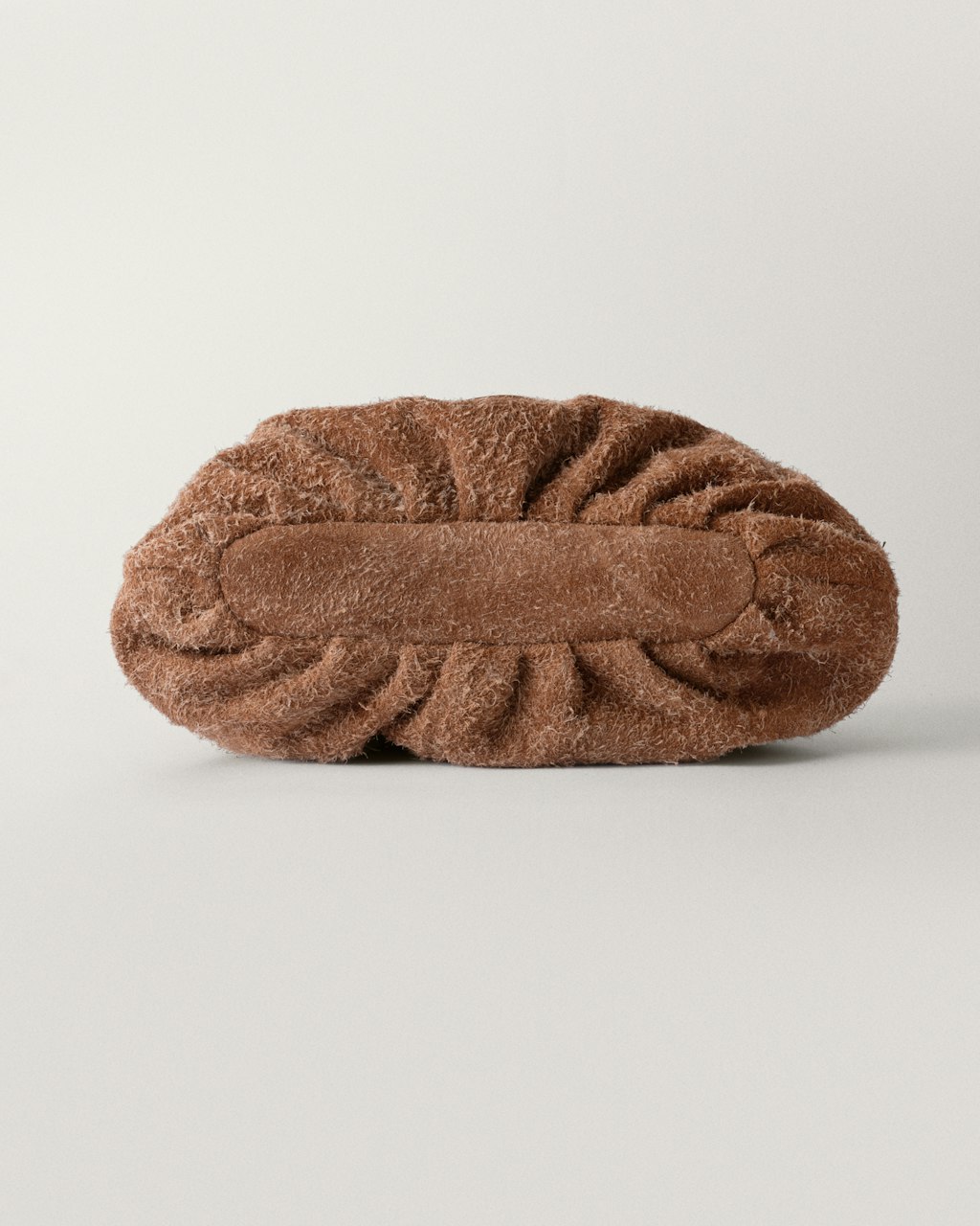 Medium size shoulder bag made of pleated cowhide leather with a cotton inner lining.