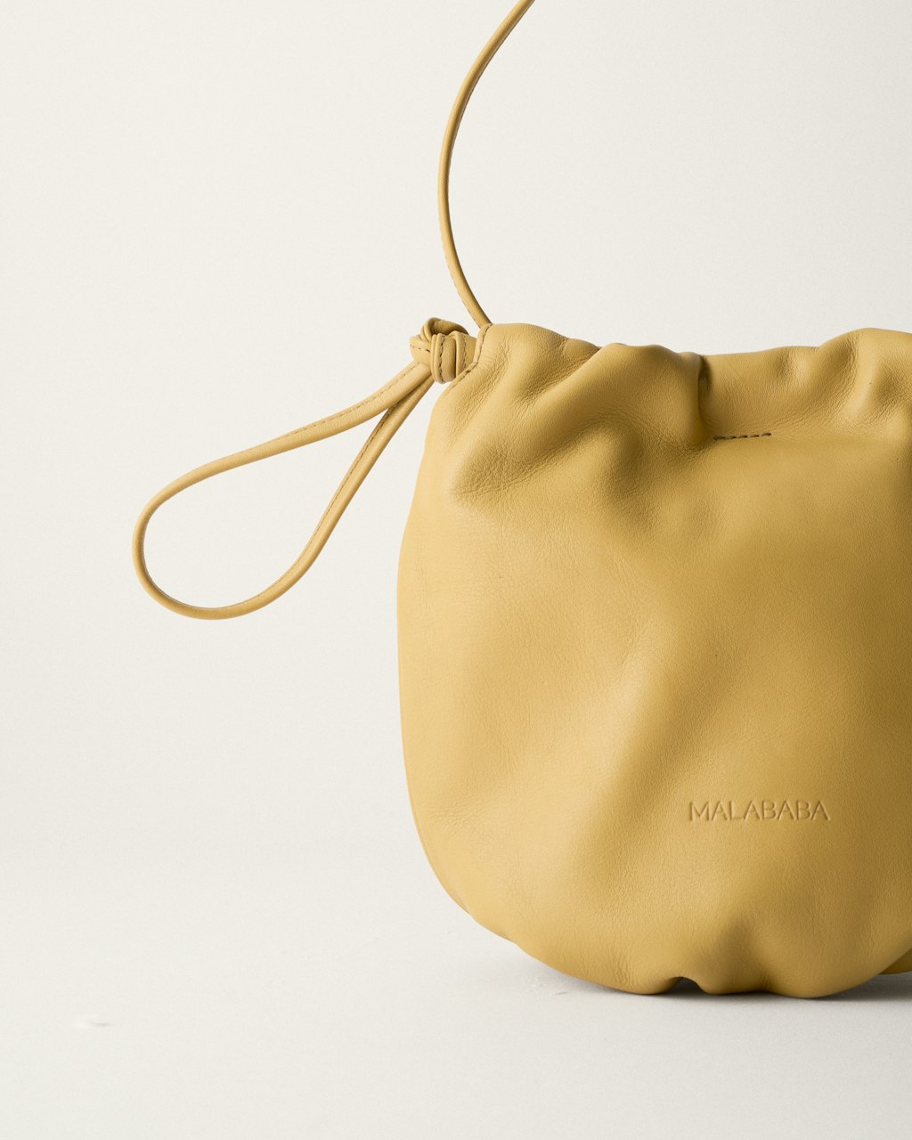 Mini-sized shoulder bag made of pleated cowhide leather with a 100% cotton inner lining.