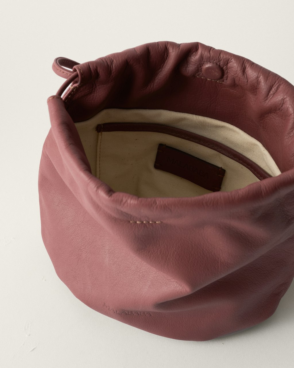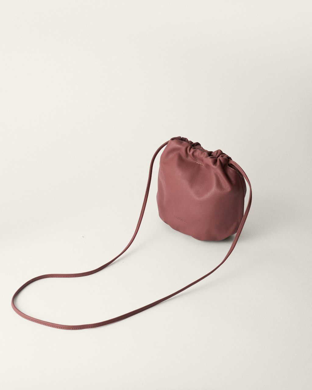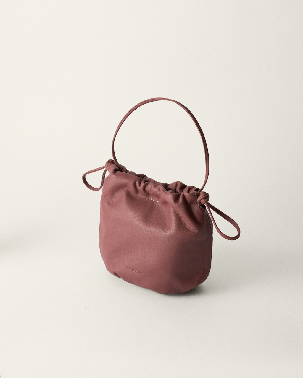 Small shoulder bag made of pleated cowhide leather with a cotton inner lining.