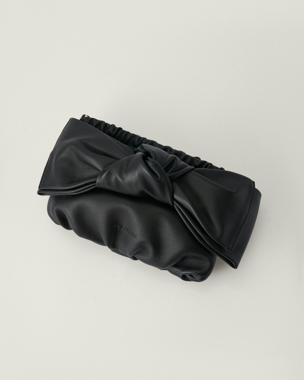 Small pouch-style bag with gathered details and an oversized leather bow. Handcrafted from exceptionally soft lamb leather and available in a wide range of colors. It can be carried by hand as a clutch, slipping your hand behind the bow, or worn over the shoulder with its chain strap.