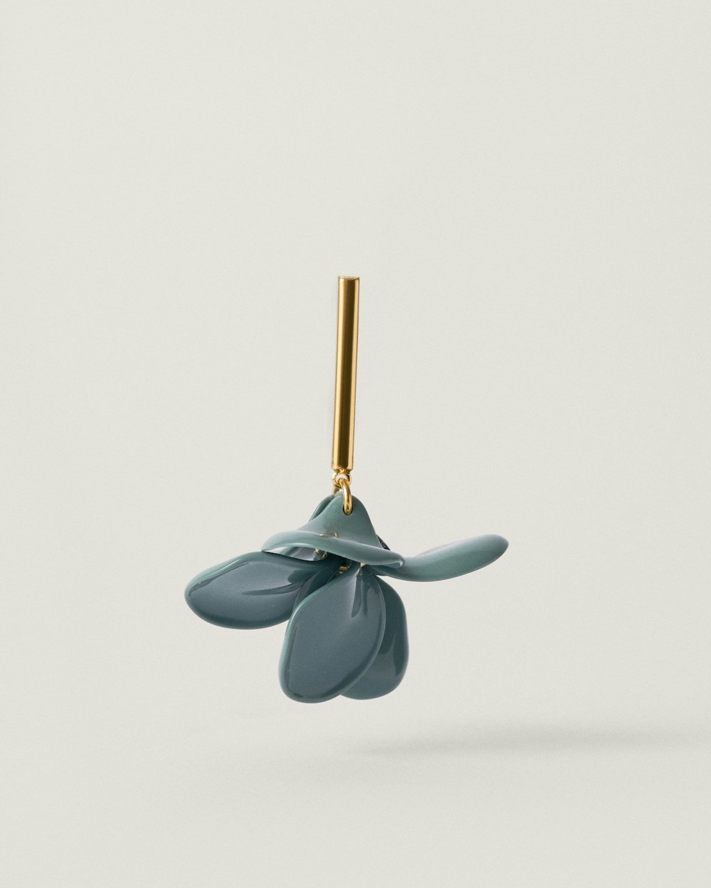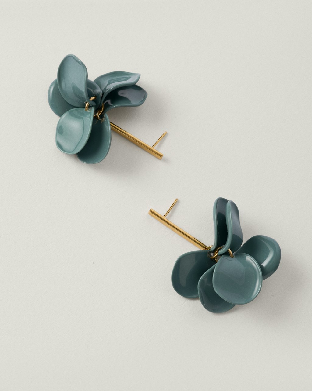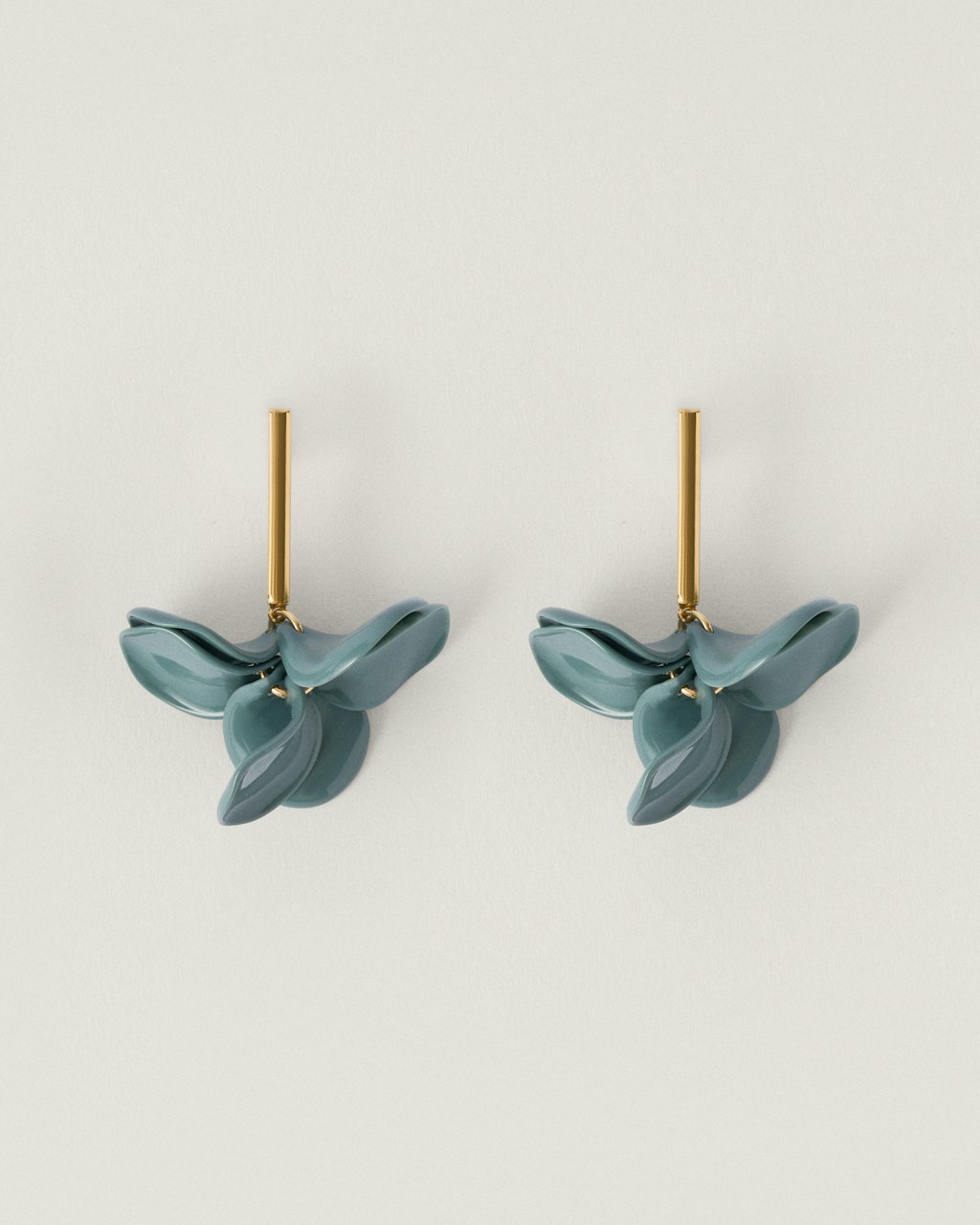 Colorful methacrylate petal motifs medium-sized earrings, pending by a very light bar-shaped closure made in brass, plated in 3micron 18kt gold.