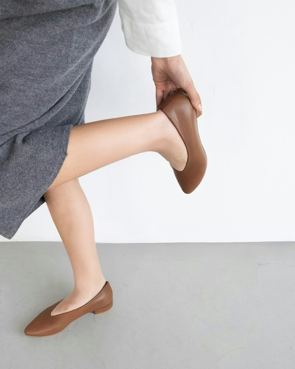V-neck very soft cowhide leather flat shoe.
