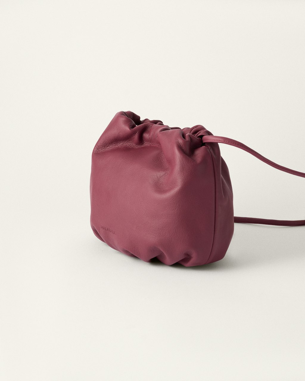 Bolso bandolera mediano realizado en piel de vacuno fruncida y con forro interior de algodón.