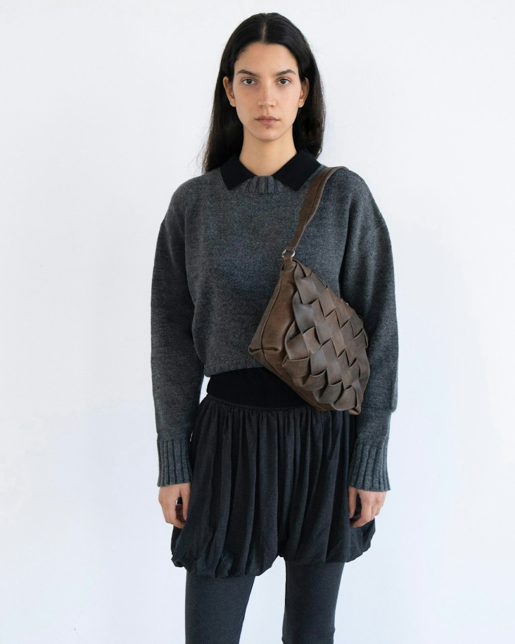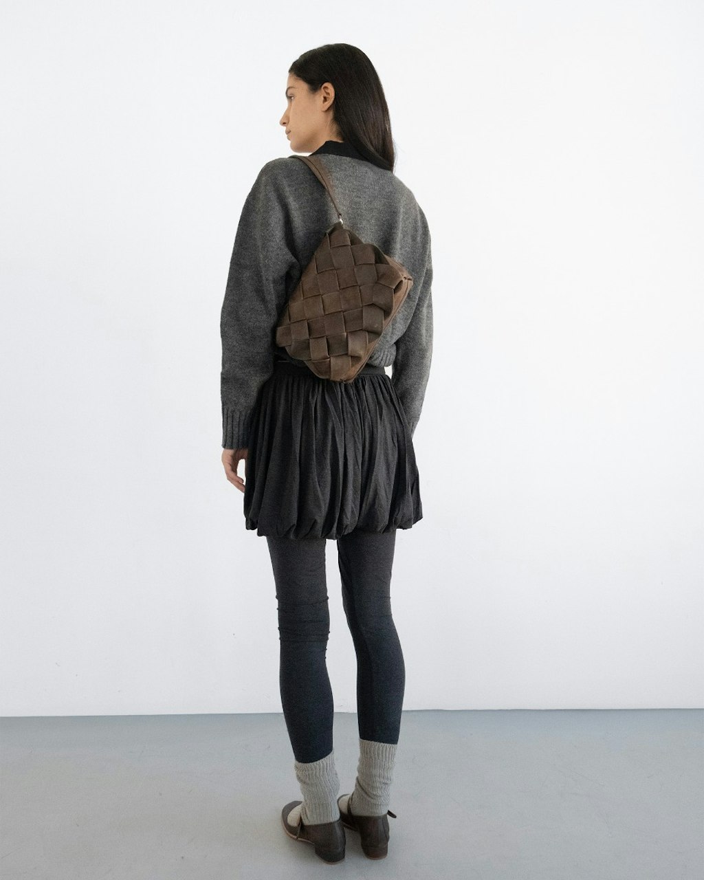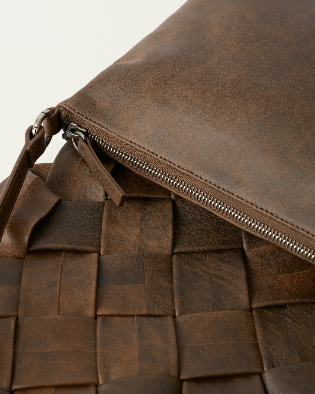 The panel of braided leather straps is impeccably hand-braided by our leather artisans.