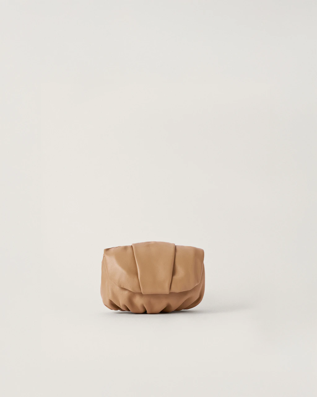 Small-sized clutch with gathered structure made in lambskin leather, extremely soft and pleasant.
