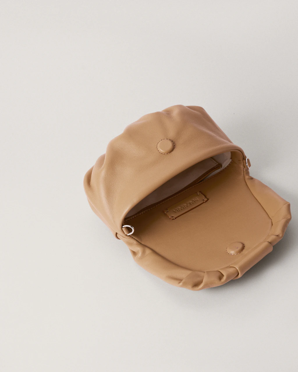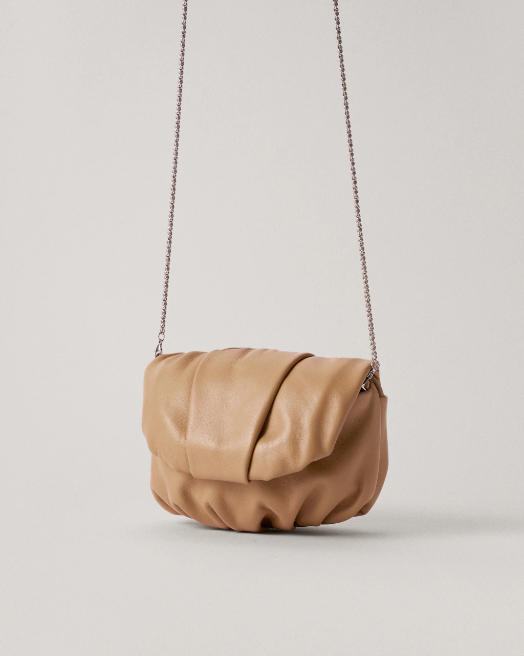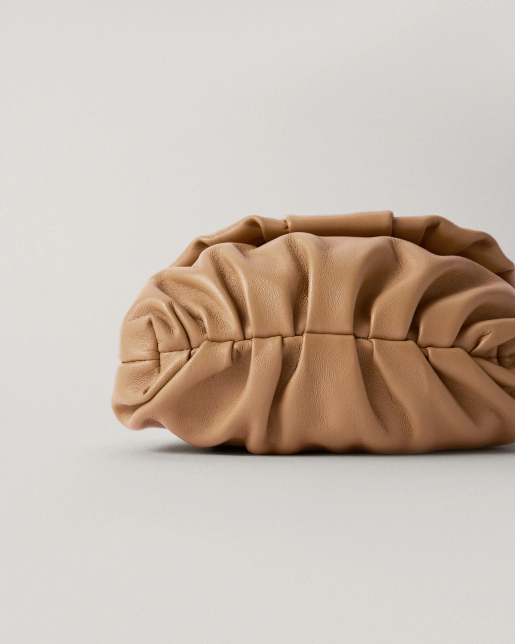 The gathered pleats are carefully handmade by our leather expert artisans.