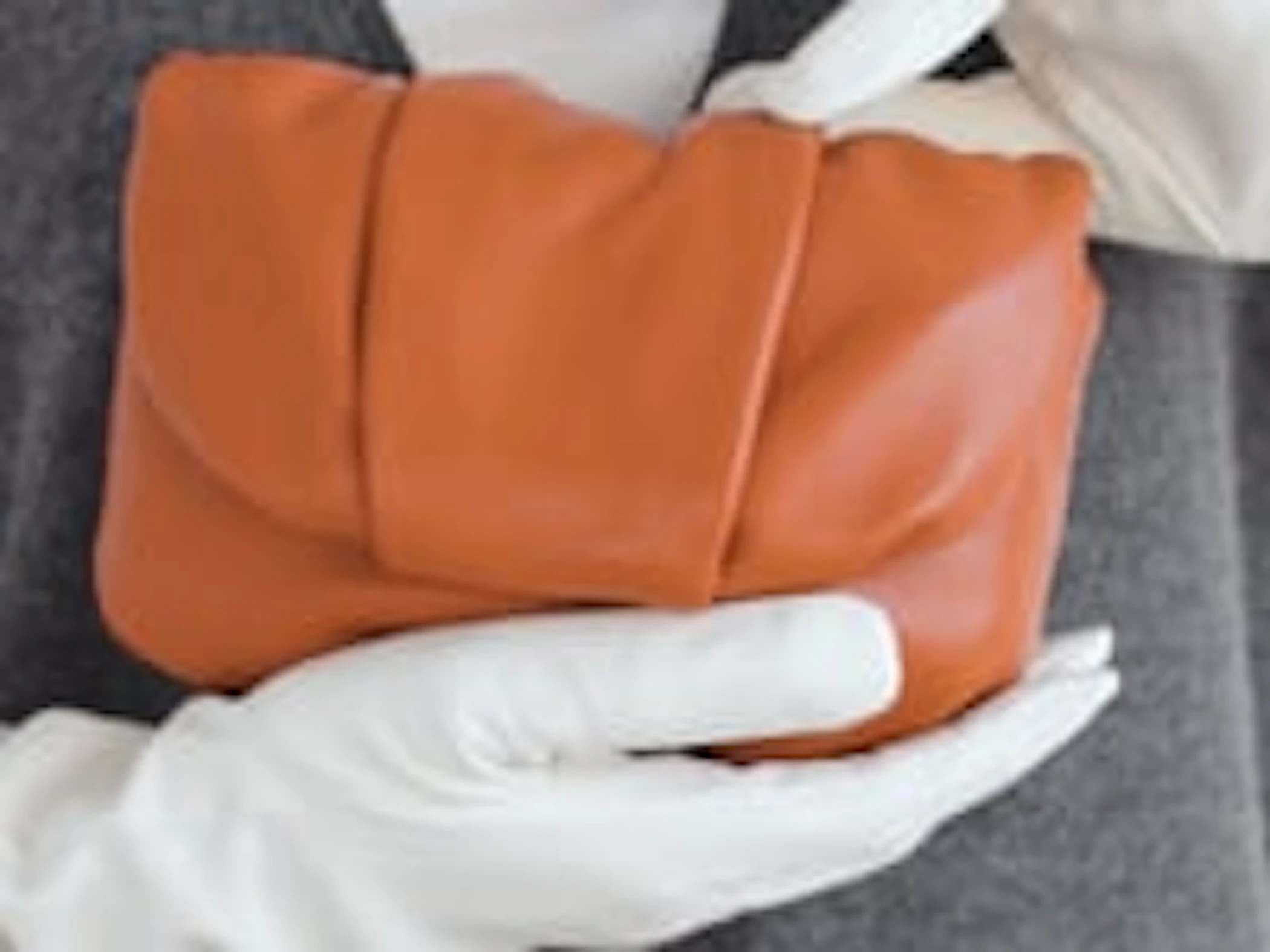 The gathered pleats are carefully handmade by our leather expert artisans.
