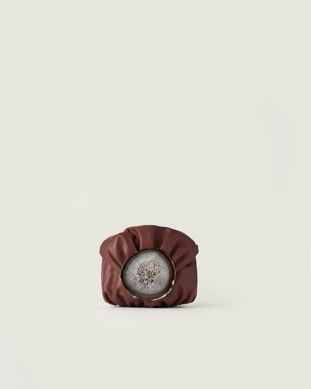 Medium-sized clutch with gathered structure made in Spanish entrefino lambskin, extremely soft and pleasant. Each bag features an authentic, natural and unique agate stone on its flap, selected by our design team, therefore each bag may differ from the images on our web.