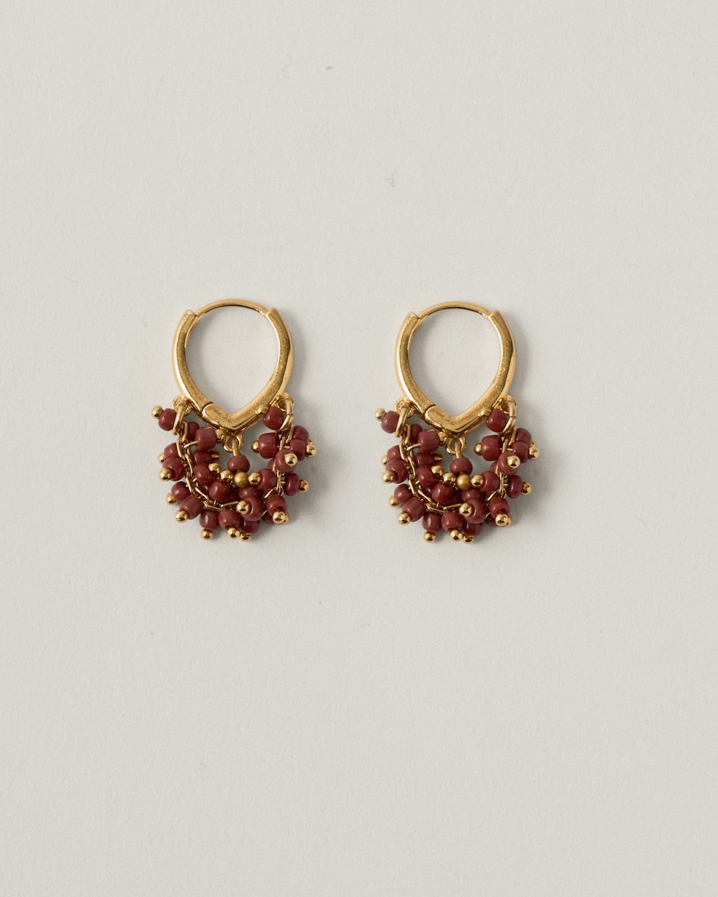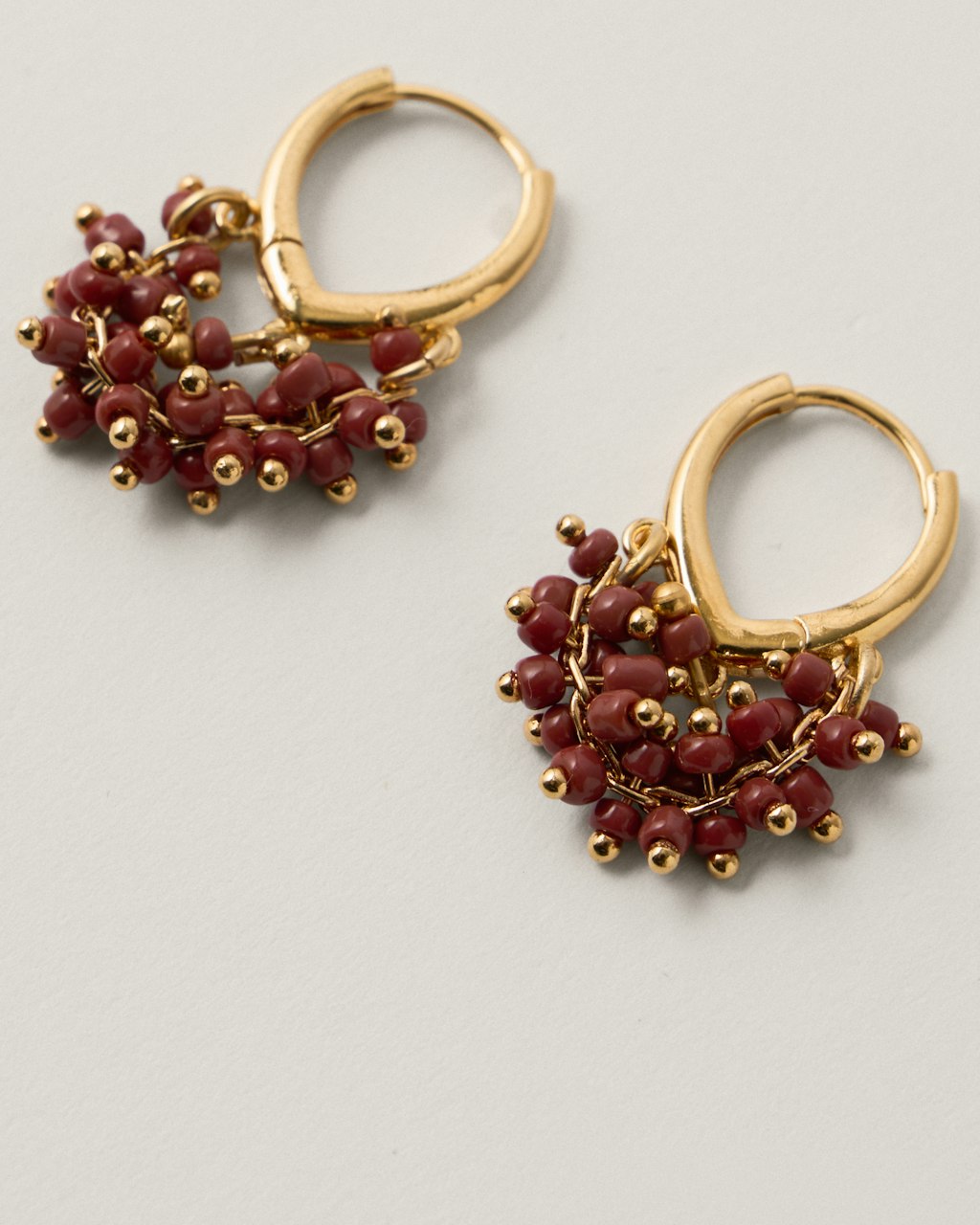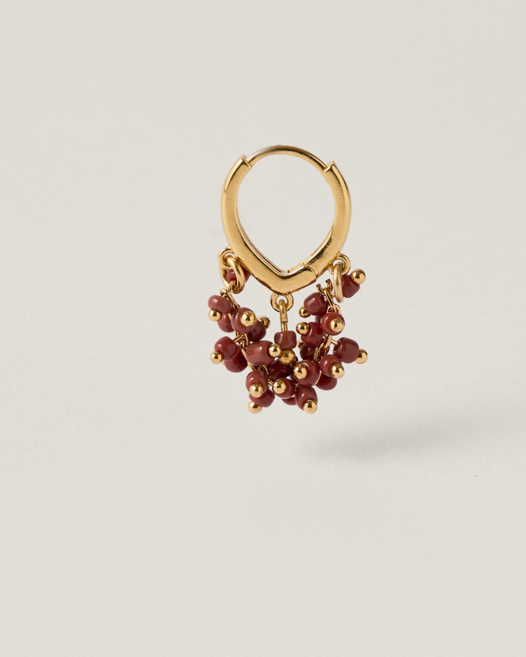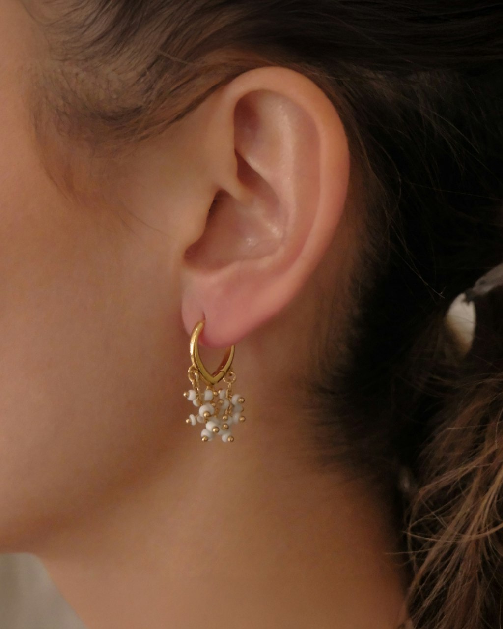 Earing with small groups of tiny balls, hanging from the piece, made of brass and plated in 3 microns of 18kt gold
