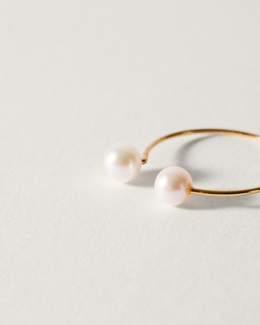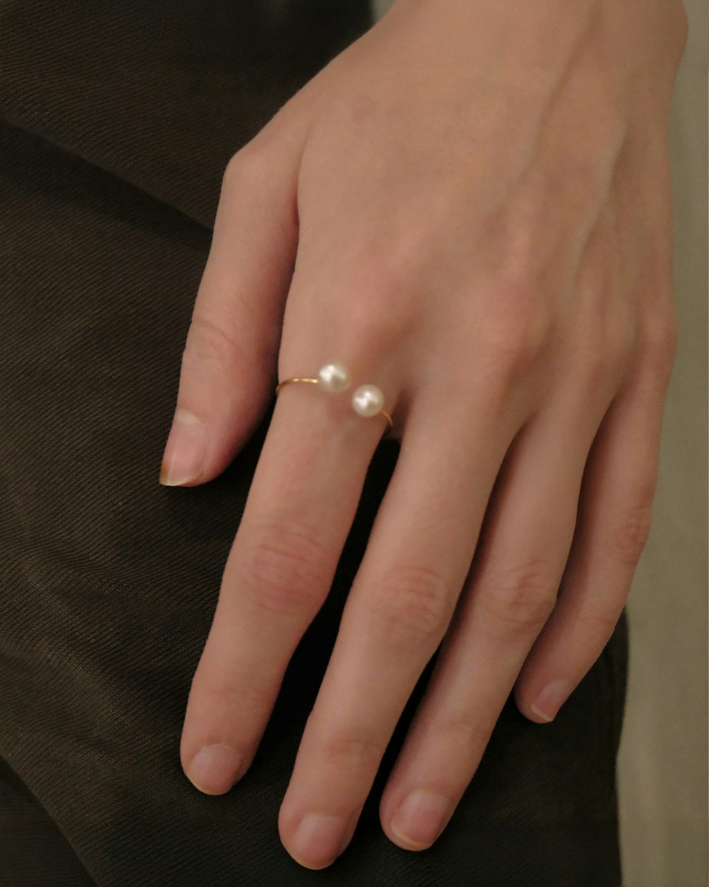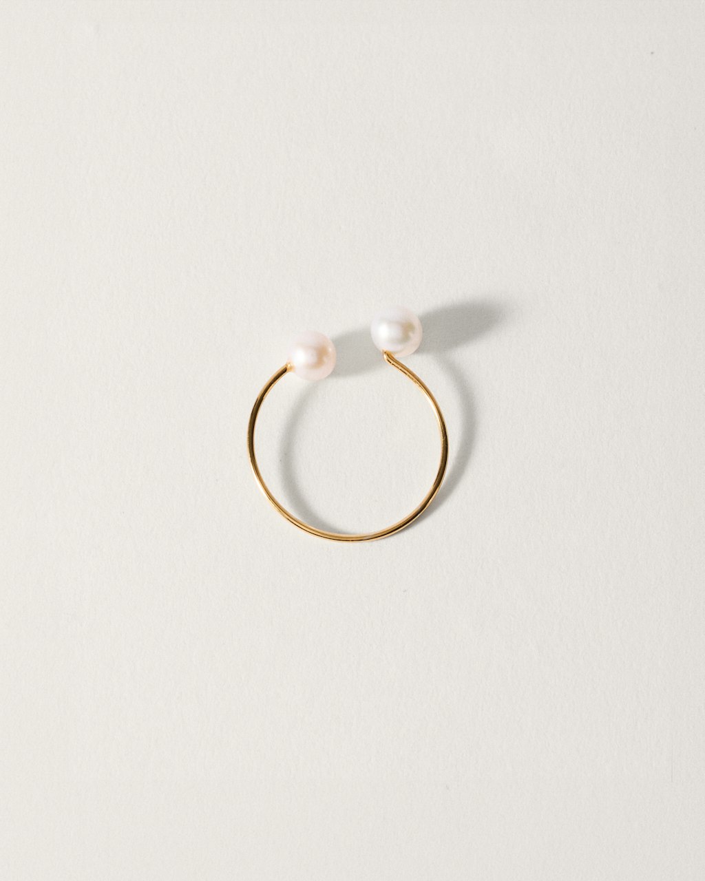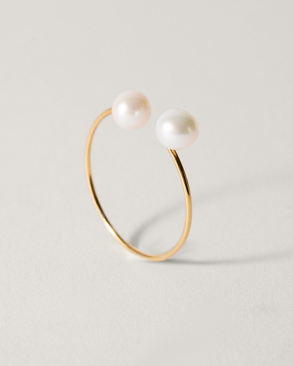 Sterling silver ring, plated in 2 micron of 24kt gold, with two small pearls.